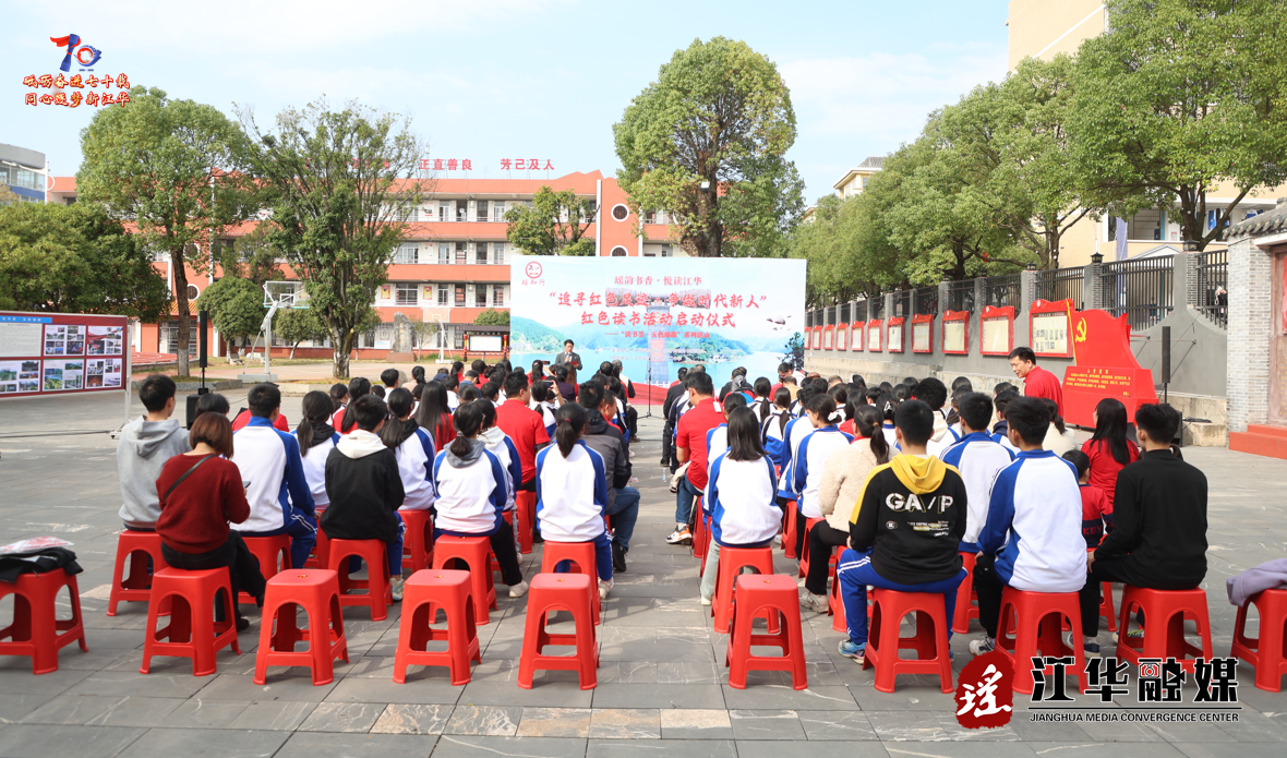 活动现场,唐孝任分享了读书感悟,勉励同学们从红色故事中感悟初心、坚定信仰,努力成长为有理想、有担当的时代新人,随后宣布红色读书活动启动。黎氢介绍了“读书荟·五色瑶都”系列活动的核心理念,希望大家在阅读中追寻红色足迹,弘扬优秀文化,共促江华文化繁荣、民族团结、人民幸福。