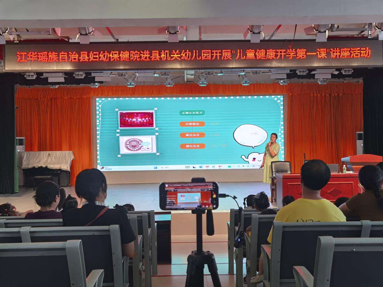9月18日,在秋季新学期伊始第35个“全国爱牙日”来临之际,江华瑶族自治县妇幼保健院组织医务人员走进县机关幼儿园,采用线上线下相结合的形式,成功举办了一场以“儿童营养”与“口腔保健”为核心的“儿童健康开学第一课”专题公益讲座。活动旨在全面提升幼儿园师生及家长的健康素养,为孩子们的健康成长保驾护航。