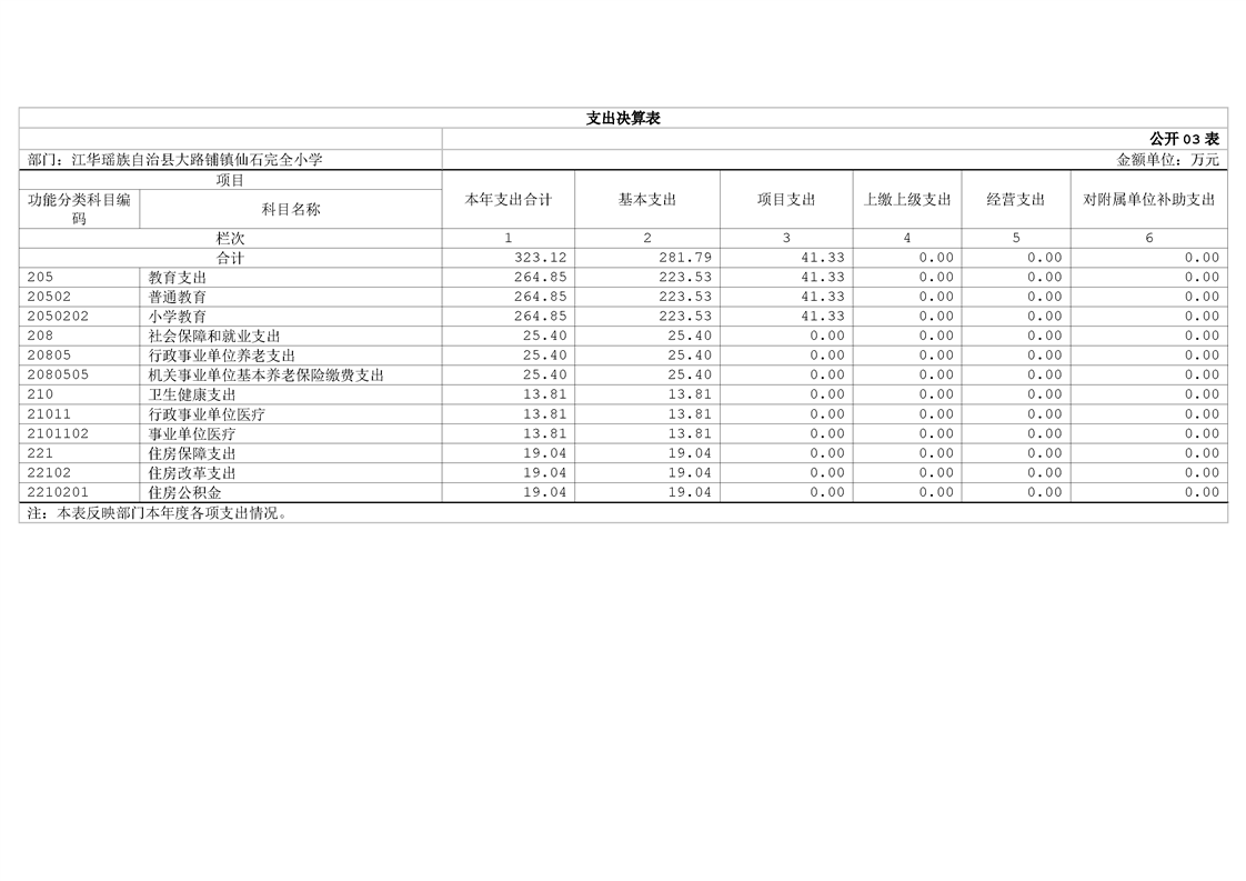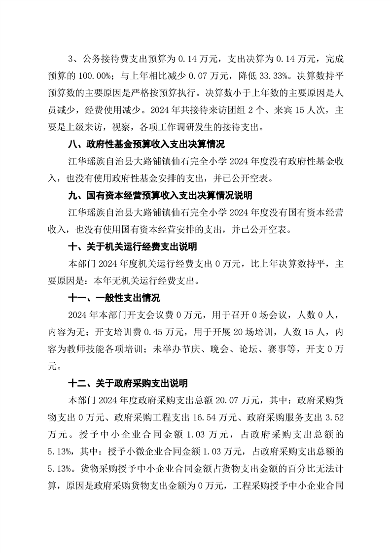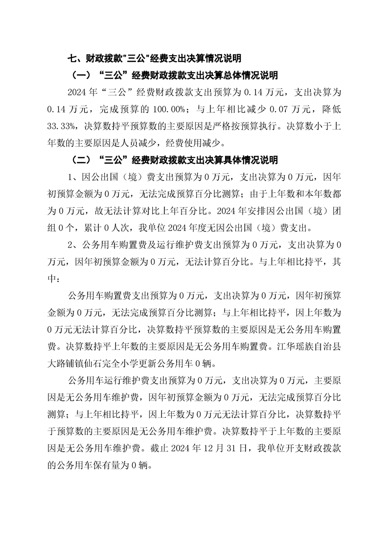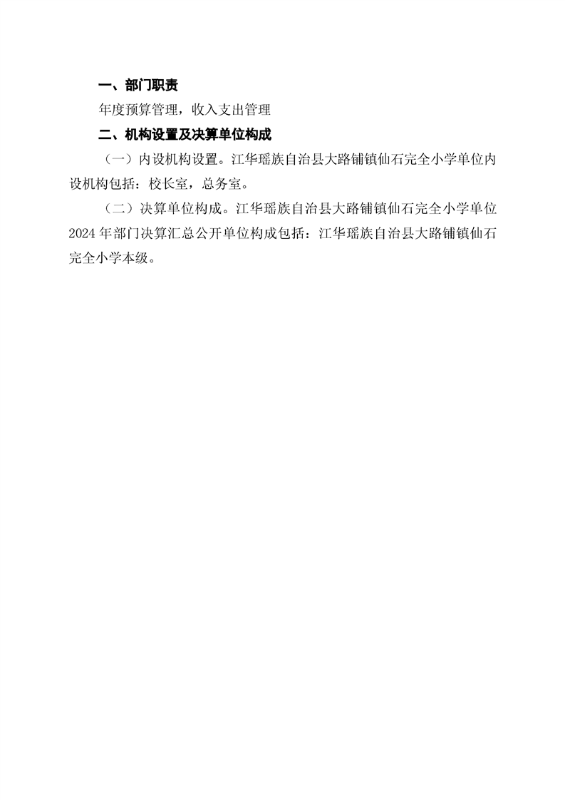 2024年度江华瑶族自治县大路铺镇仙石完全小学部门决算
