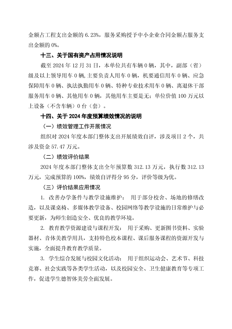 江华瑶族自治县大路铺镇仙石完全小学2024年度部门整体支出绩效自评报告