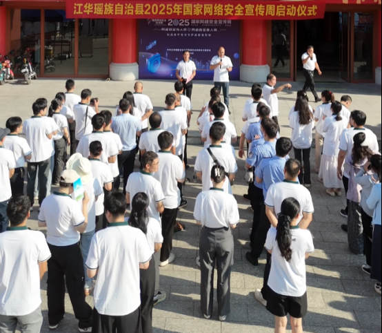 9月15日,江华瑶族自治县2025年国家网络安全宣传周启动仪式在县民族文化宫前坪举行。本次活动由县委宣传部、县委网信办牵头,县教育局、县科工局、县科协等多部门联合举办。共同围绕“网络安全为人民,网络安全靠人民”的主题,通过多元化宣传形式,向公众普及网络安全知识,提升全民防护能力,共同守护绿色数字时代。