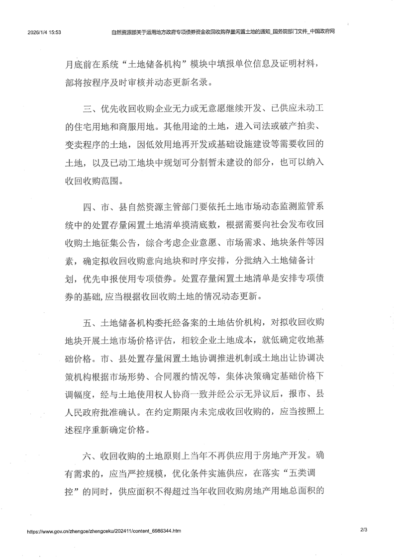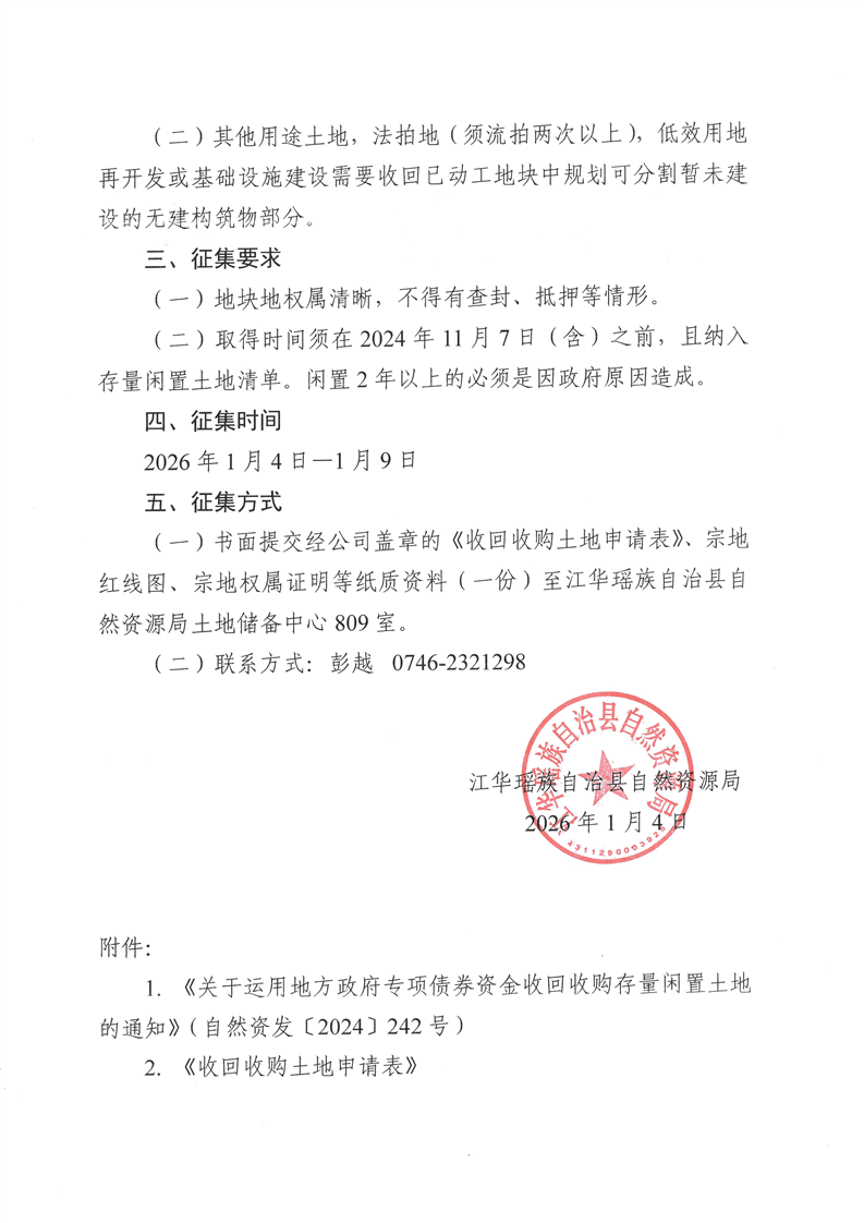 关于运用地方政府专项债券资金收回收购存量闲置土地的征集公告
