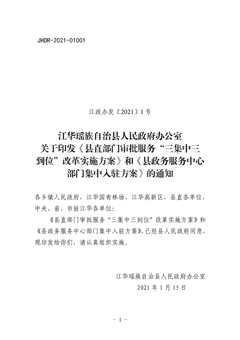1.文字解读|关于《江华瑶族自治县人民政府关于印发县直部门审批服务“三集中三到位”改革实施方案的通知》政策解读