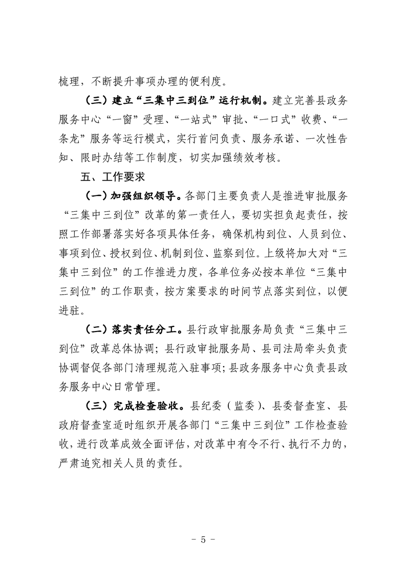 江华瑶族自治县人民政府办公室关于印发《县直部门审批服务“三集中三到位”改革实施方案》和《县政务服务中心部门集中入驻方案》的通知