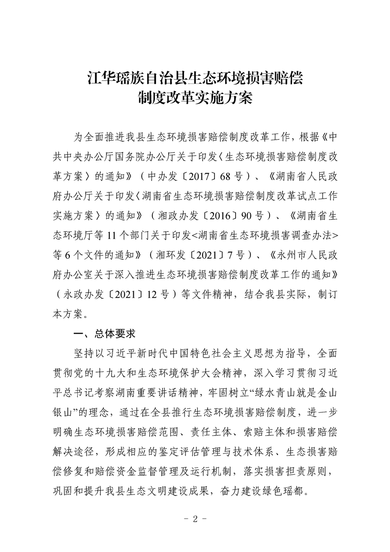 1.文字解读|关于《江华瑶族自治县生态环境损害赔偿制度改革实施方案》政策解读