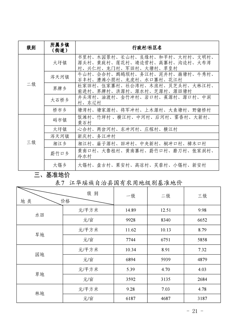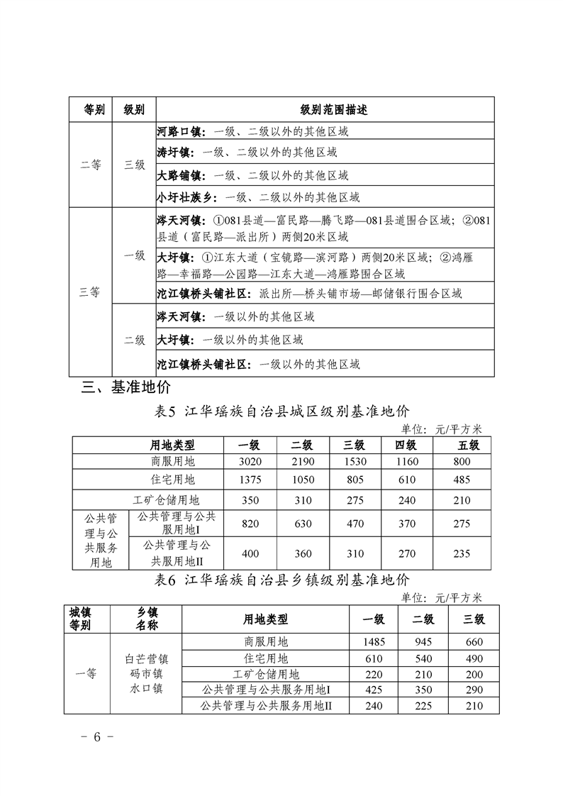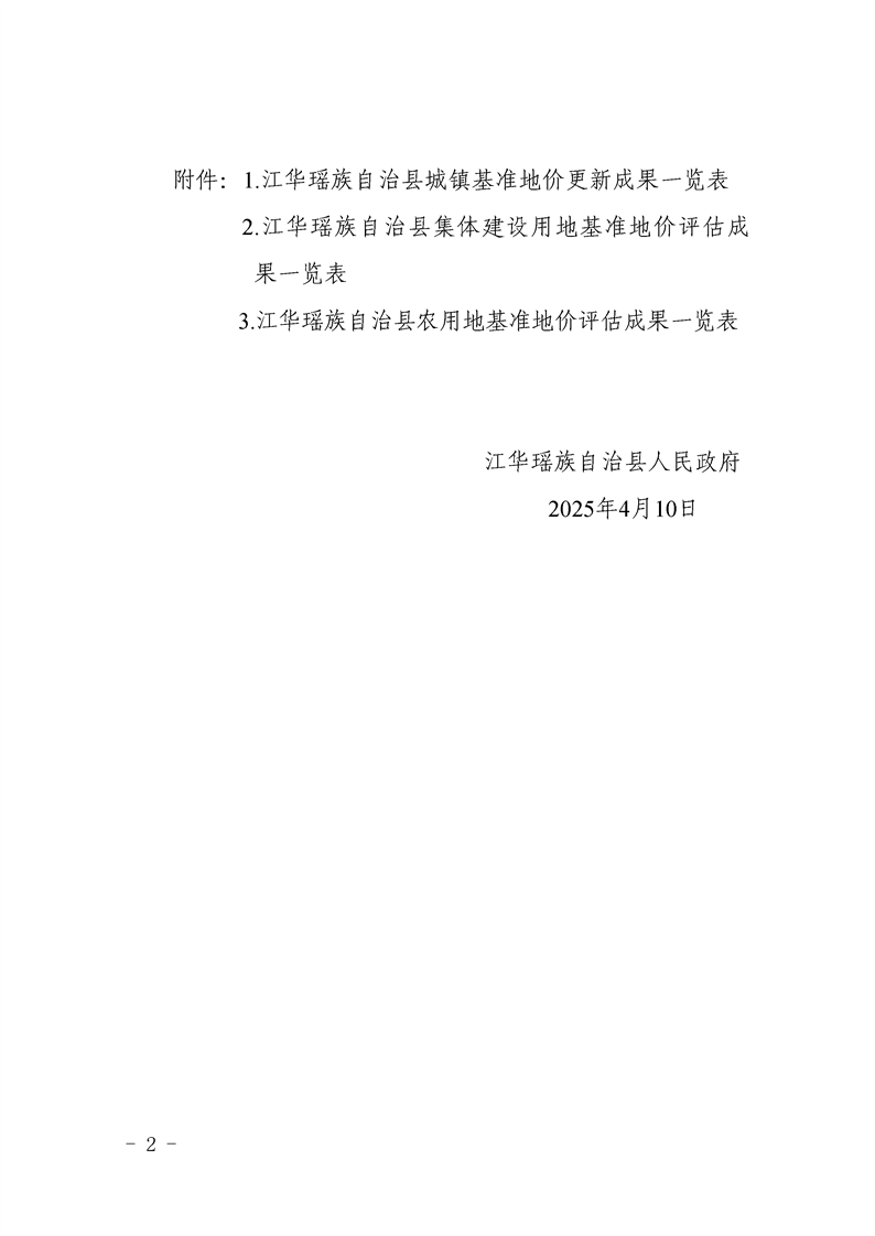 江华瑶族自治县人民政府关于公布江华瑶族自治县城镇基准地价更新成果、集体建设用地基准地价评估成果、农用地基准地价评估成果的通知