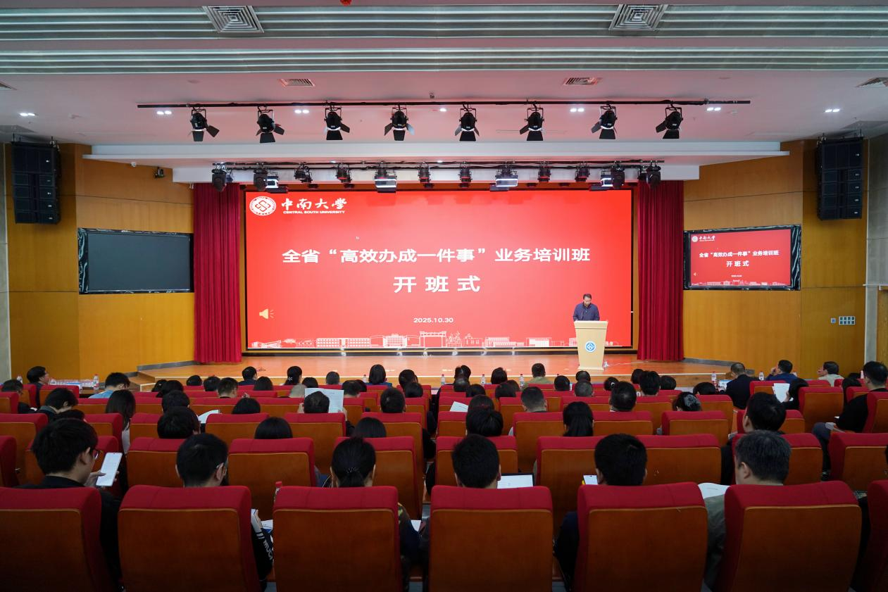 10月30日,全省“高效办成一件事”业务培训班在中南大学开班。本次培训旨在深化政务服务改革,推动政务服务“好办易办”,进一步全面提升政府智治水平和行政效能。省数据局负责同志出席开班仪式并讲话,省直有关单位、各市州数据和政务服务管理部门150余名工作人员参加培训。