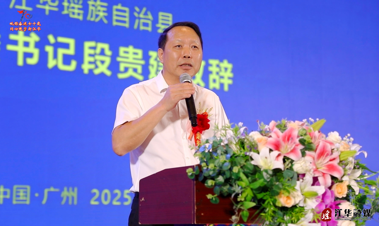 段贵建代表县委、县人大、县政府、县政协祝贺新当选的商会领导班子,并向在粤乡贤和企业家致以问候。他指出,今年来江华经济社会持续高质量发展,主要体现在“一主一特”数智双“馨”:江华稀土储量丰富,千亿电机产业集聚度达78%,每8台国产电机有1台“江华造”,高新技术企业数量全市领先;“母亲式”服务刻骨铭“心”:作为湖南唯一的全域清洁能源友好互动示范县、全绿电运行示范县,江华实现全绿电供应,永清高速建成后将直通大湾区三小时经济圈,全县党员干部践行“五心四到两保障”“两联零跑五自由”服务企业;“神州瑶都”历久弥“新”:江华森林覆盖率达78.91%,空气质量优良率98.1%,是全国首批生态文明建设示范县。千亿电机集群加快打造,湾水源抽水蓄能电站等重大项目建设扎实推进。今年恰逢江华70周年县庆,段贵建诚挚邀请在粤企业家们到江华走一走、看一看,尝美酒美食、品瑶风瑶韵,到江华投资兴业、大展宏图,共享发展机遇。