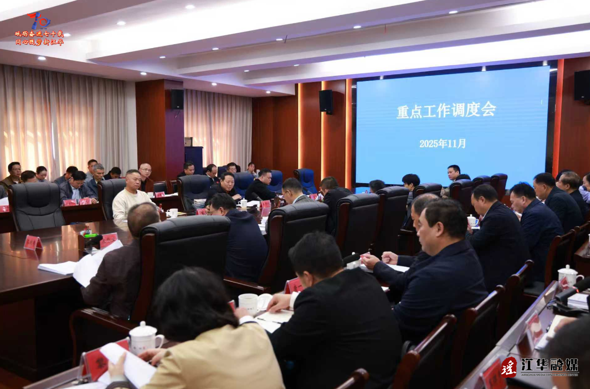 11月1日,江华县委书记段贵建主持召开全县重点工作调度会,传达学习党的二十届四中全会精神,调度70周年县庆筹备和巩固拓展脱贫攻坚成果同乡村振兴有效衔接工作。江华县委副书记、县长吴军臣,该县县领导义洁、唐亚辉、何开银、安青、曹斌、唐元甲、蒋星辉、刘志栋、左华生等出席会议。