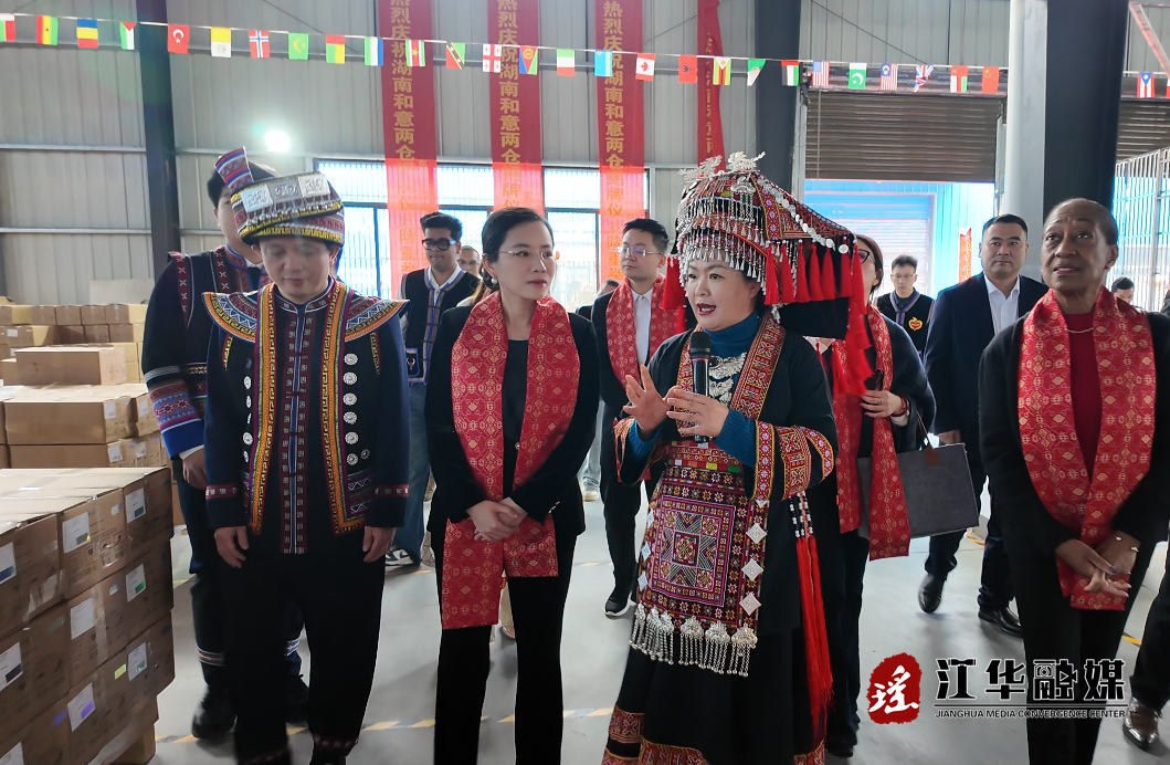 活动期间,考察团走进湖南明意湖智能科技有限公司生产基地及展厅,观摩了生产流程;参观了盘王殿与瑶族展览馆,进一步增进了文化认同,深化江华与国际社会在女性发展、产业协作、文化互鉴等领域的友好联结。