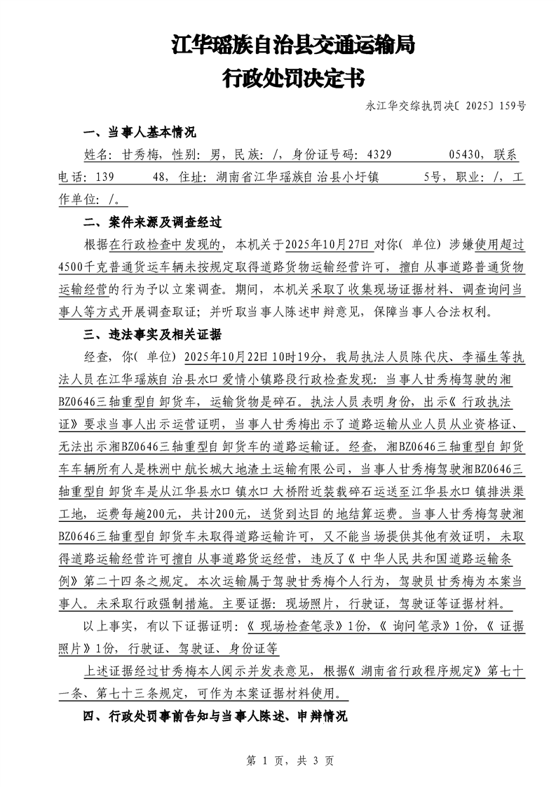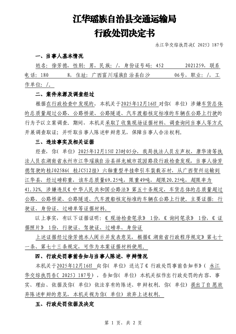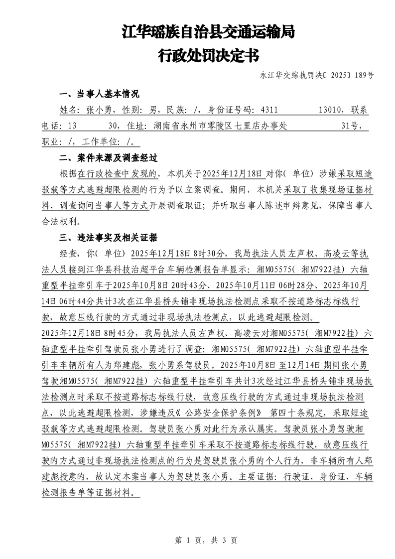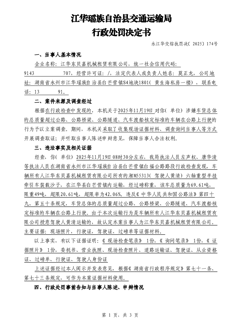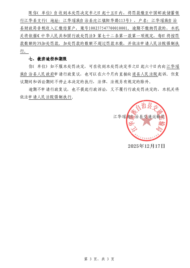 永江华交综执罚决 〔2025〕137-194号