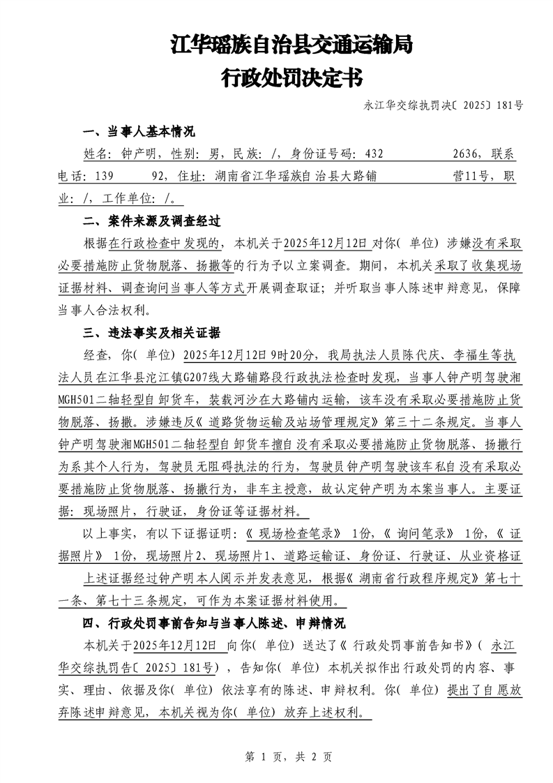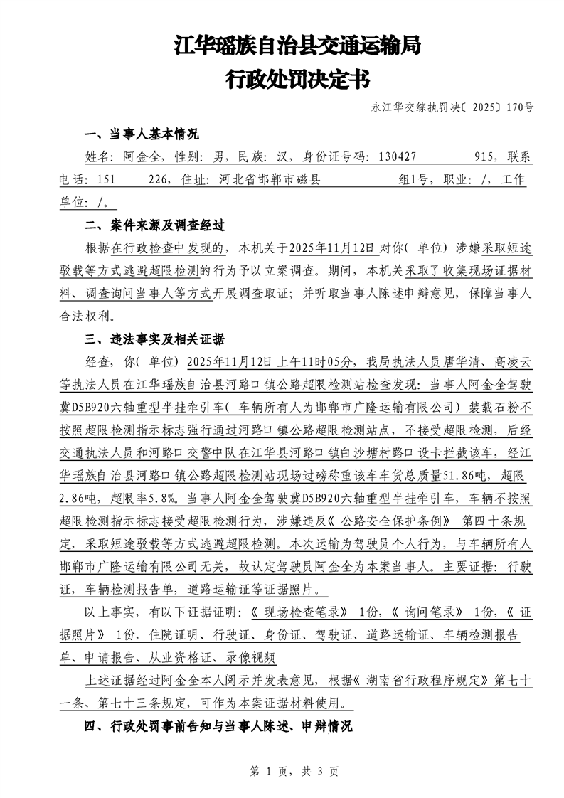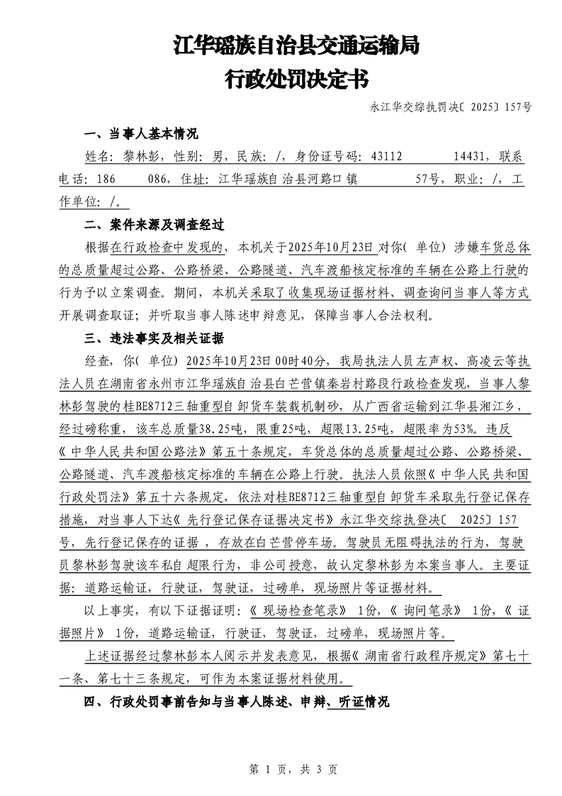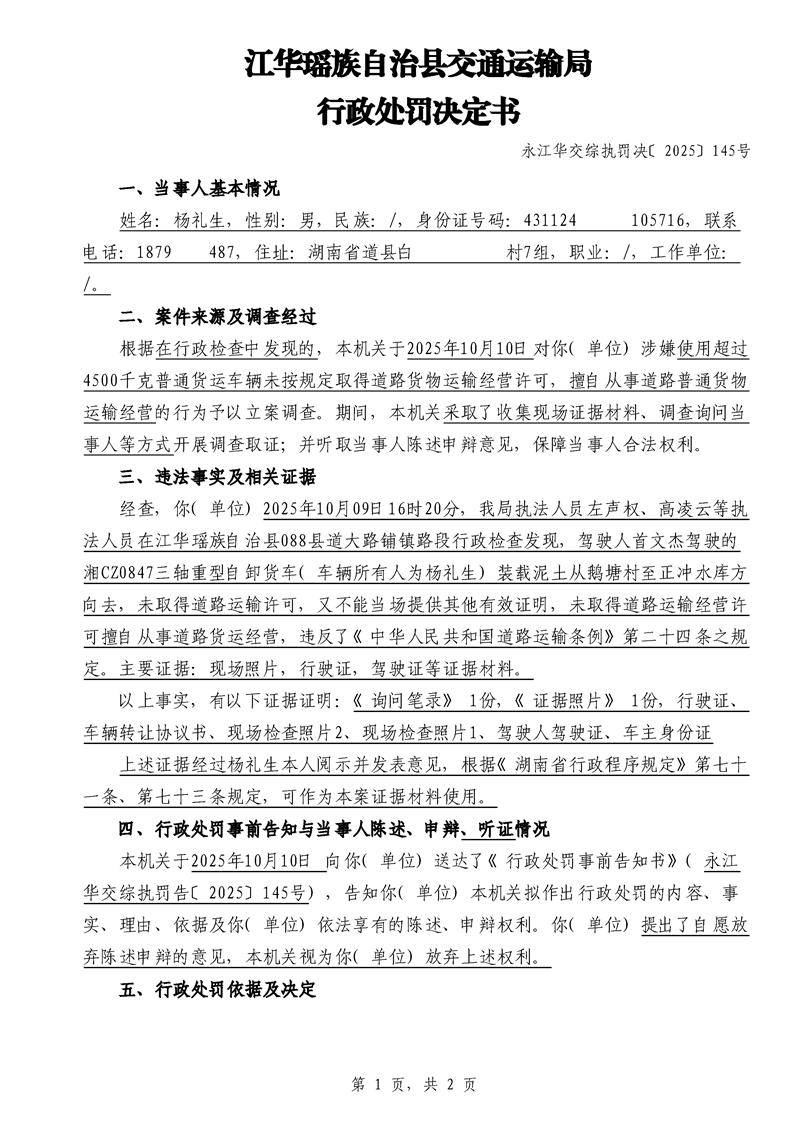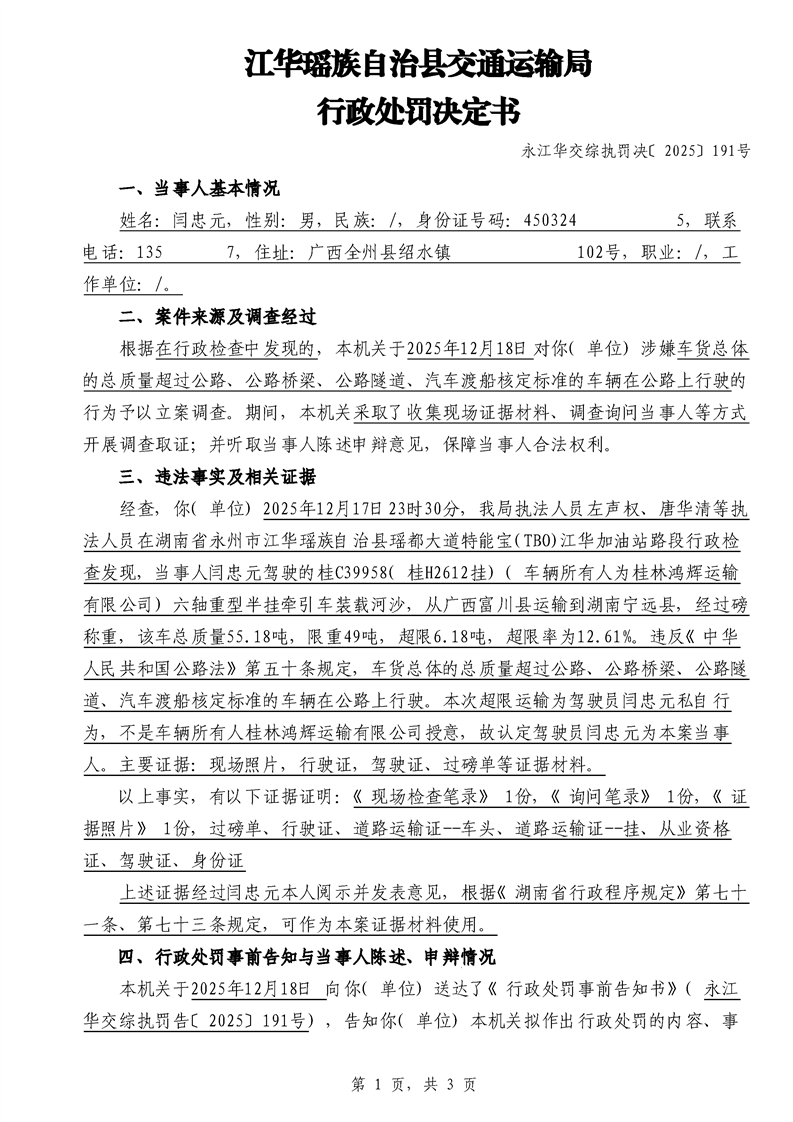 永江华交综执罚决 〔2025〕137-194号