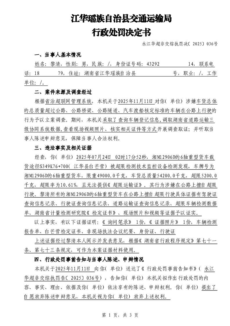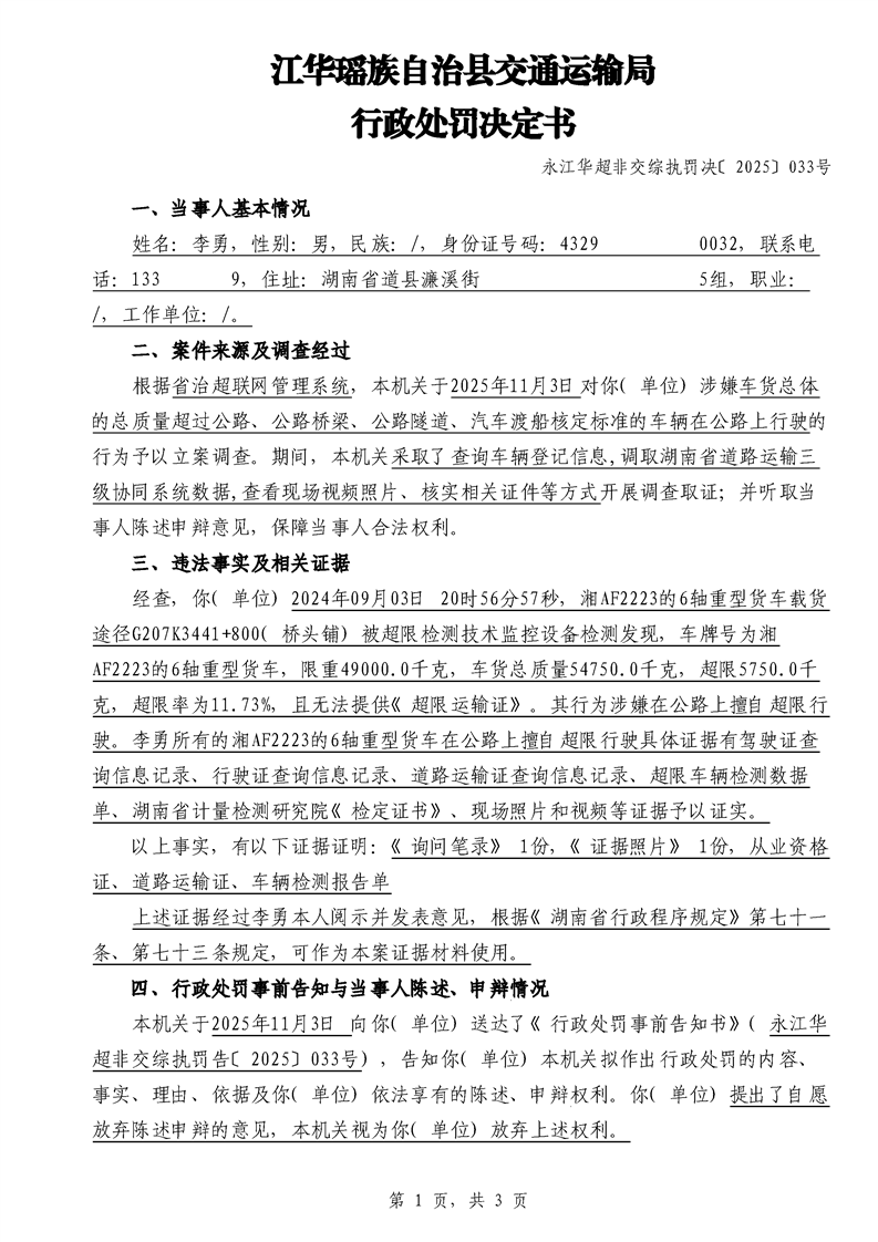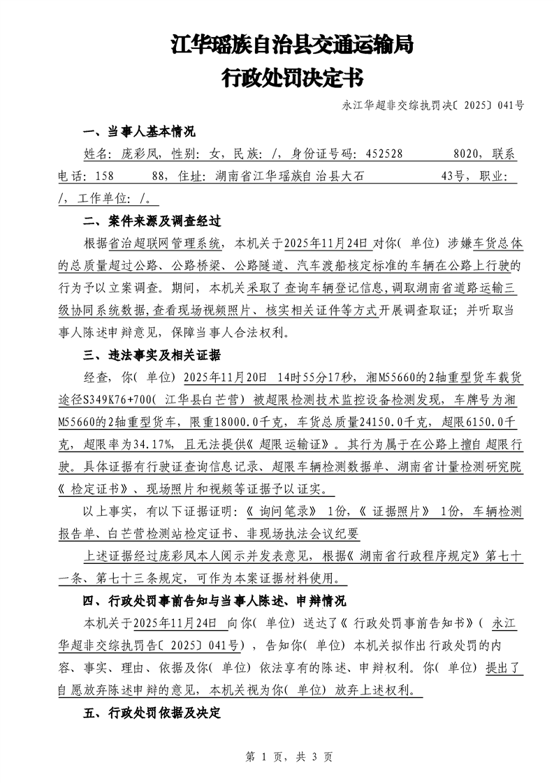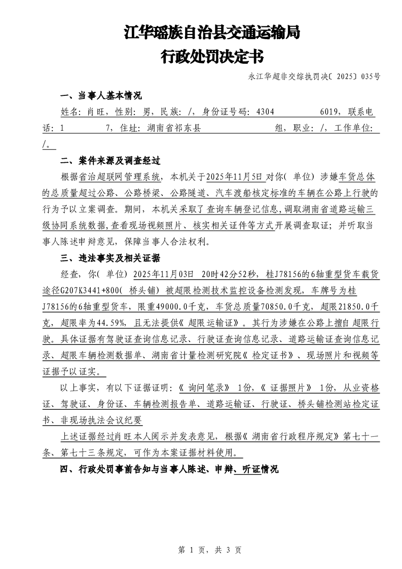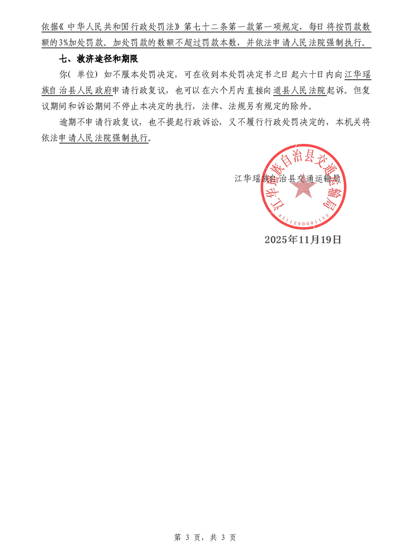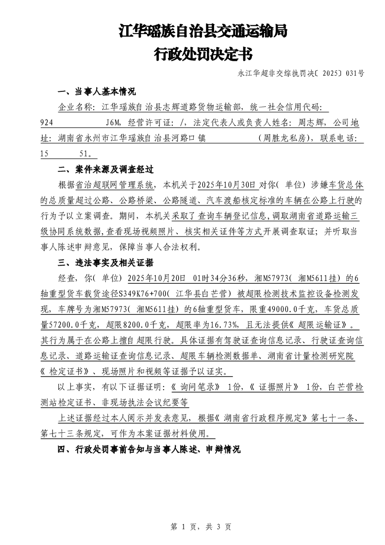 江华超非交综执罚决〔2025〕022号-044号