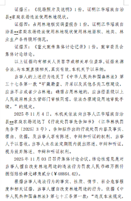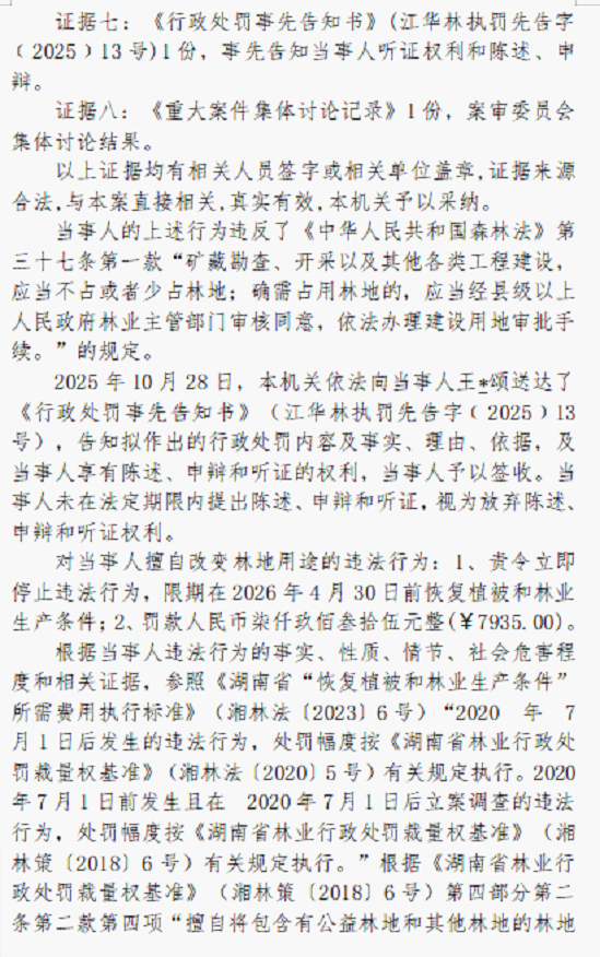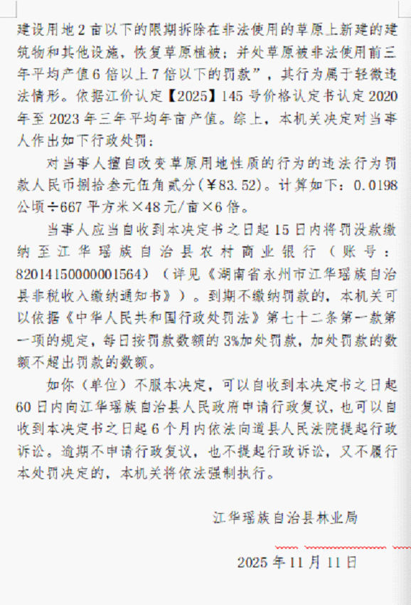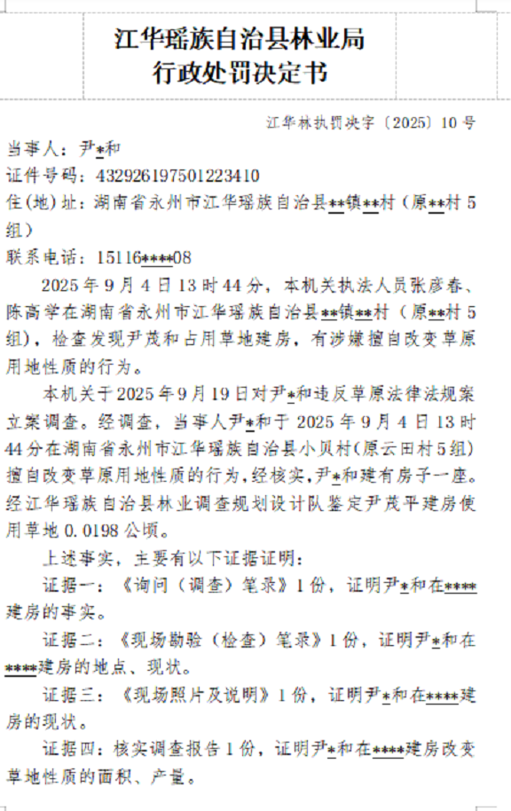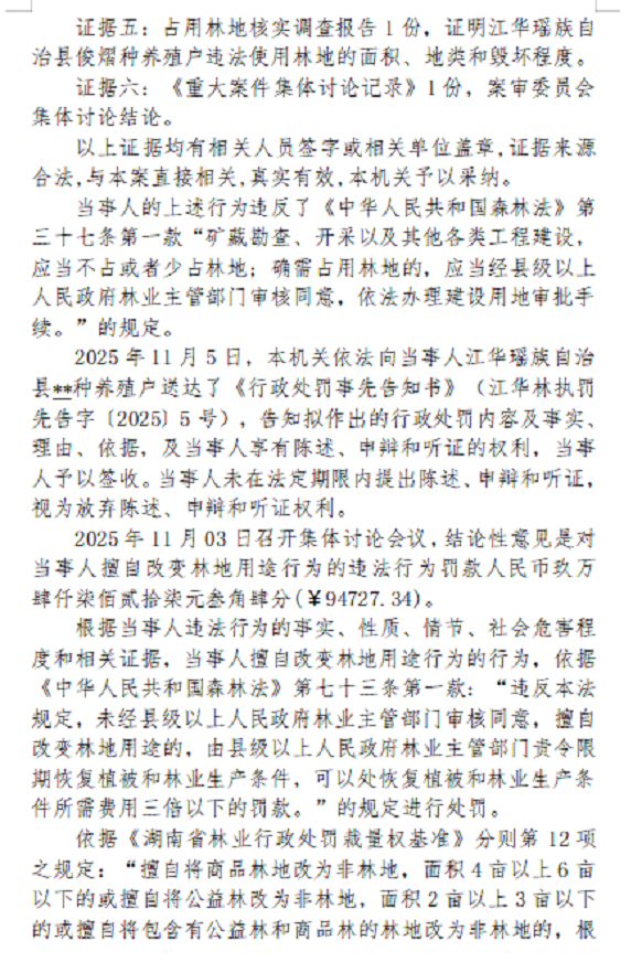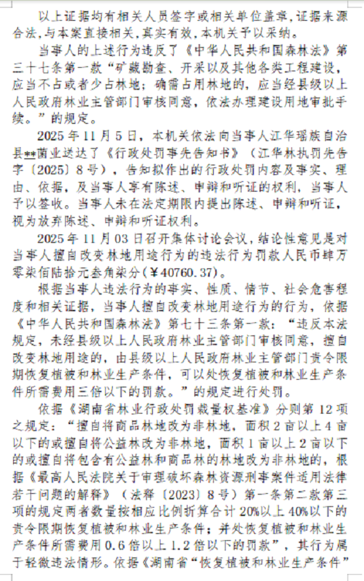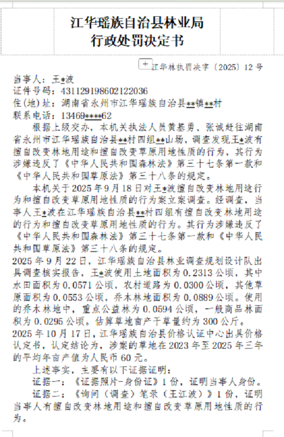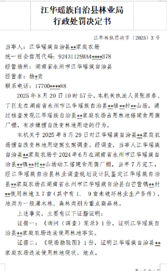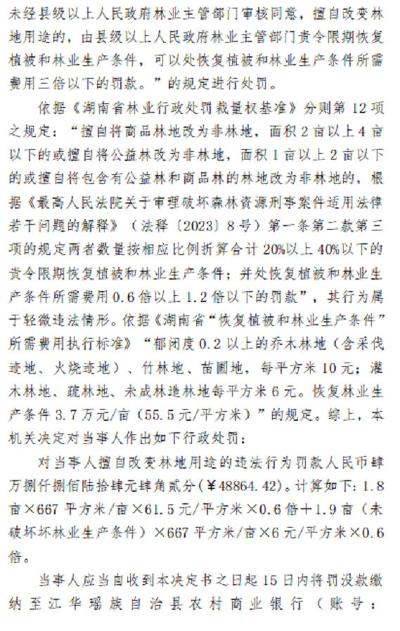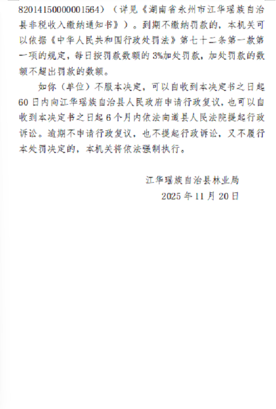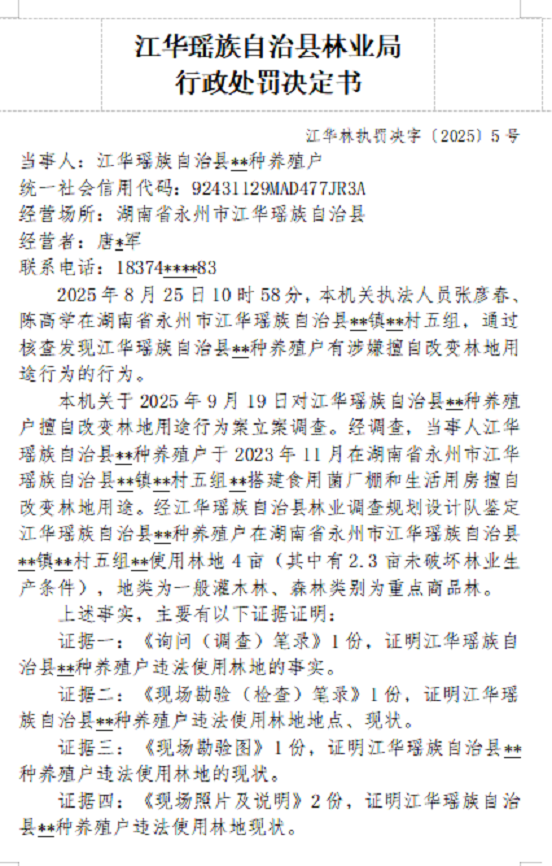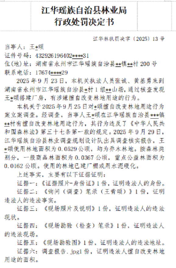 名称: 江华瑶族自治县林业局行政处罚决定书