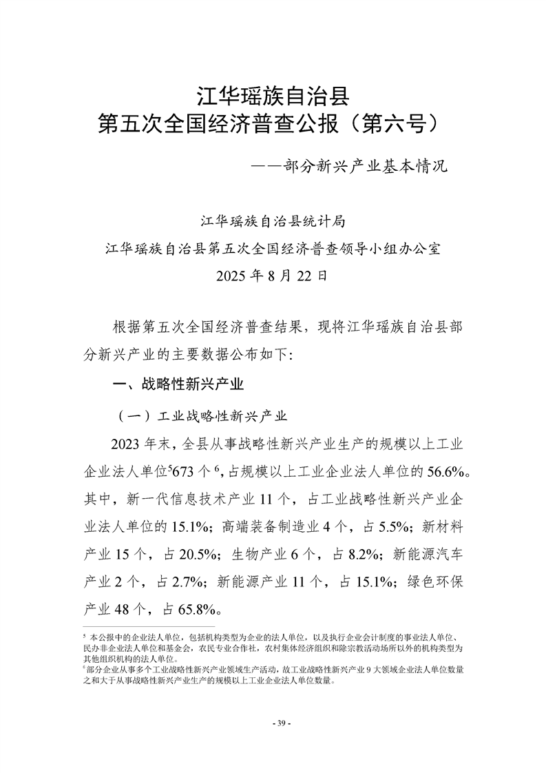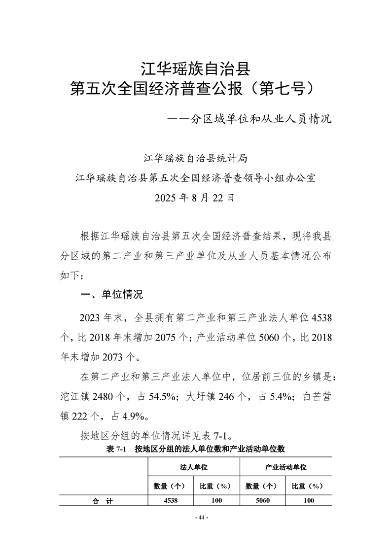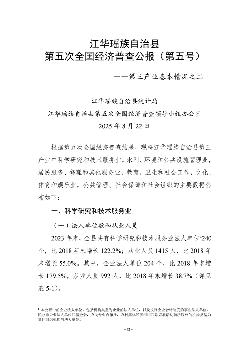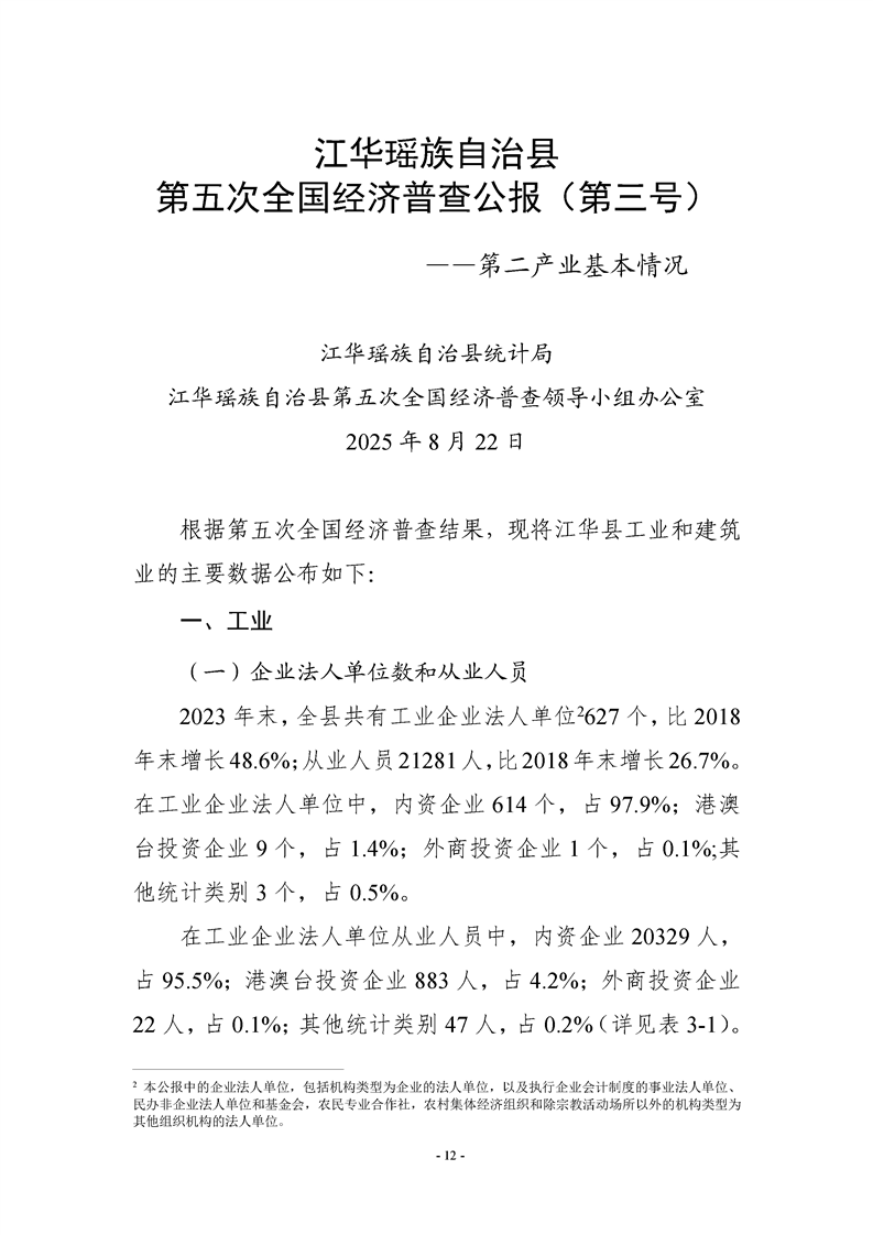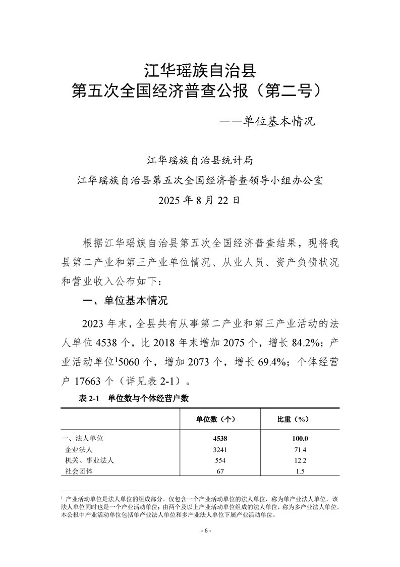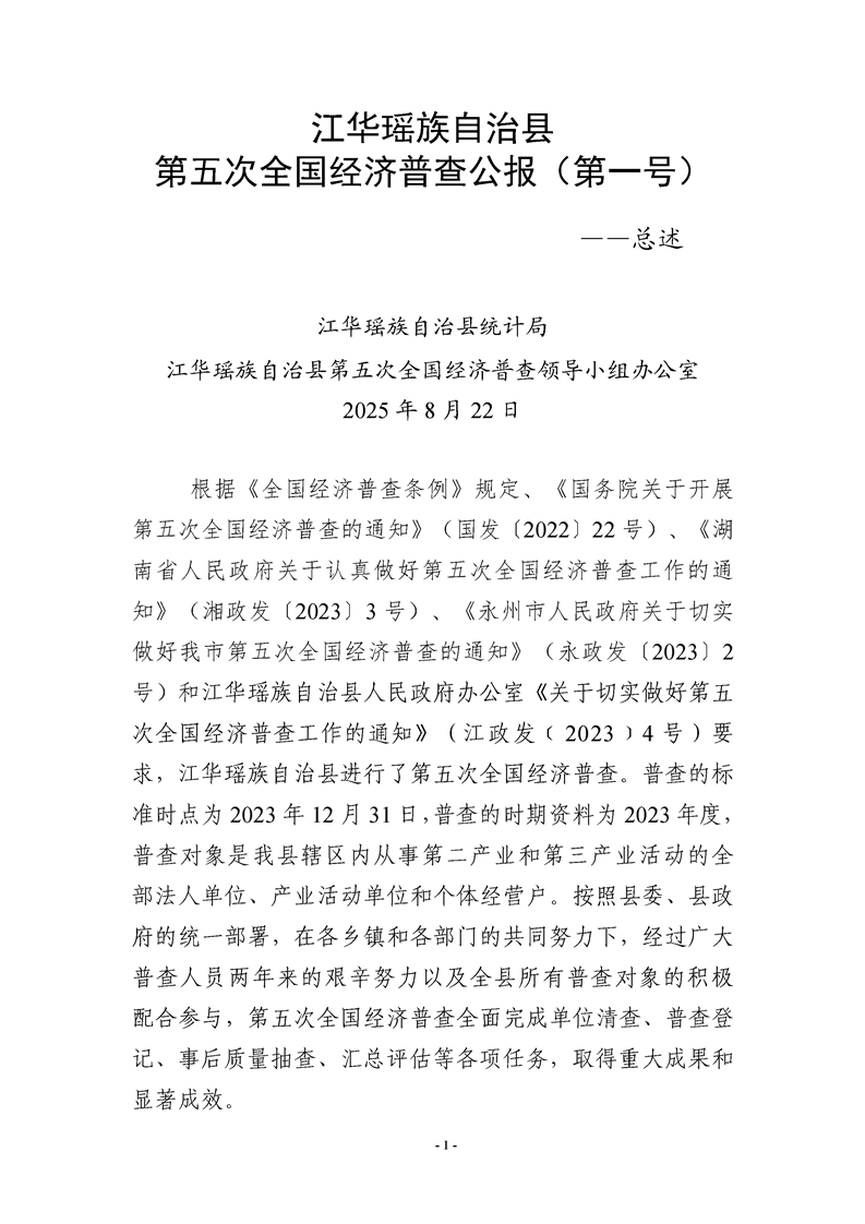 江华瑶族自治县第五次全国经济普查公报