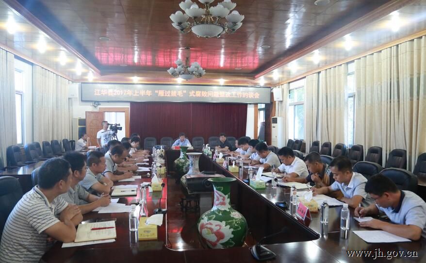 今年以来,江华瑶族自治县继续深入推进“雁过拔毛”式腐败专项整治工作,制定下发了《关于开展“雁过拔毛”式腐败问题专项整治集中整改工作的意见》,成立了由县委书记任组长、县委常委为成员的高规格领导小组,深入开展县、乡、村三级扶贫等各项专项资金大清理、农村集体“三资”和村级财务大清查,严肃查处损害群众利益的不正之风等“雁过拔毛”式腐败问题。但个别乡镇思想重视不够,履行“两个责任”不力,工作进展缓慢。从统计数据及掌握情况看,1至6月,水口镇、界牌乡等8个乡镇“雁过拔毛”式腐败问题专项整治工作“后进”。