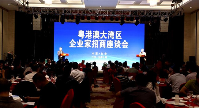 10月19日下午,我县组织前来参加丰辉电机开业仪式的粤港澳大湾区企业家们召开座谈会,推介我县的营商环境,邀请和欢迎企业家们在江华投资兴业,市委常委、县委书记罗建华,县领导龙飞凤、黄志坚、陈槐权、艾克海、唐伟文、廖树清出席座谈会。