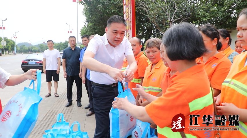 7月20日,江华县委副书记、县长吴军臣看望慰问高温下坚守岗位的一线工作者,为他们送去防暑降温物品,并通过他们向广大劳动者致以诚挚的问候和衷心的感谢。