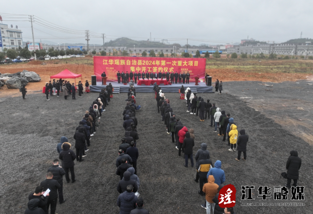 2月26日上午,江华2024 年第一次重大项目集中开工签约仪式在江华高新区举行,段贵建、吴军臣、蒋剑、伍继承、义洁等县四大家领导出席仪式。