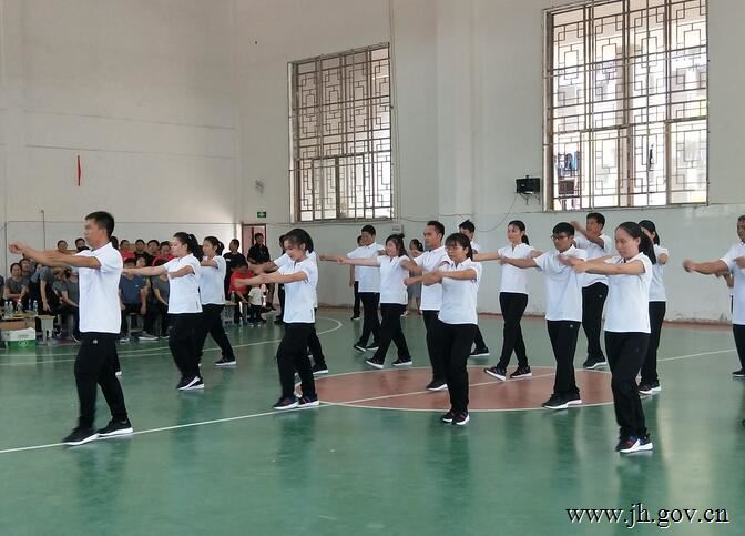 “下面首先上场的是桥铺完全小学……”小圩乡桥铺完全小学的全体23名教师在领队的带领下,迈着整齐的步伐走上了体操比赛赛场。9月25日下午,江华瑶族自治县教职工第九套广播体操比赛水口中学赛区在水口中学举行,来自大圩、小圩、水口三个乡镇的11所中小学校近400名教师参加比赛,展现教职工体育健身风采,推动全民健身运动的开展。比赛最后胜出的前四名,大圩中学、水口中心校、大圩一小、大圩二小四所学校将参加9月30日举行的全县教职工第九套广播体操比赛决赛。