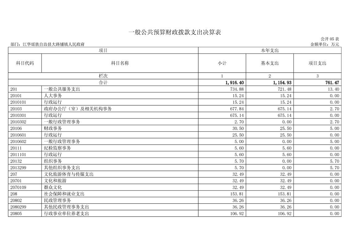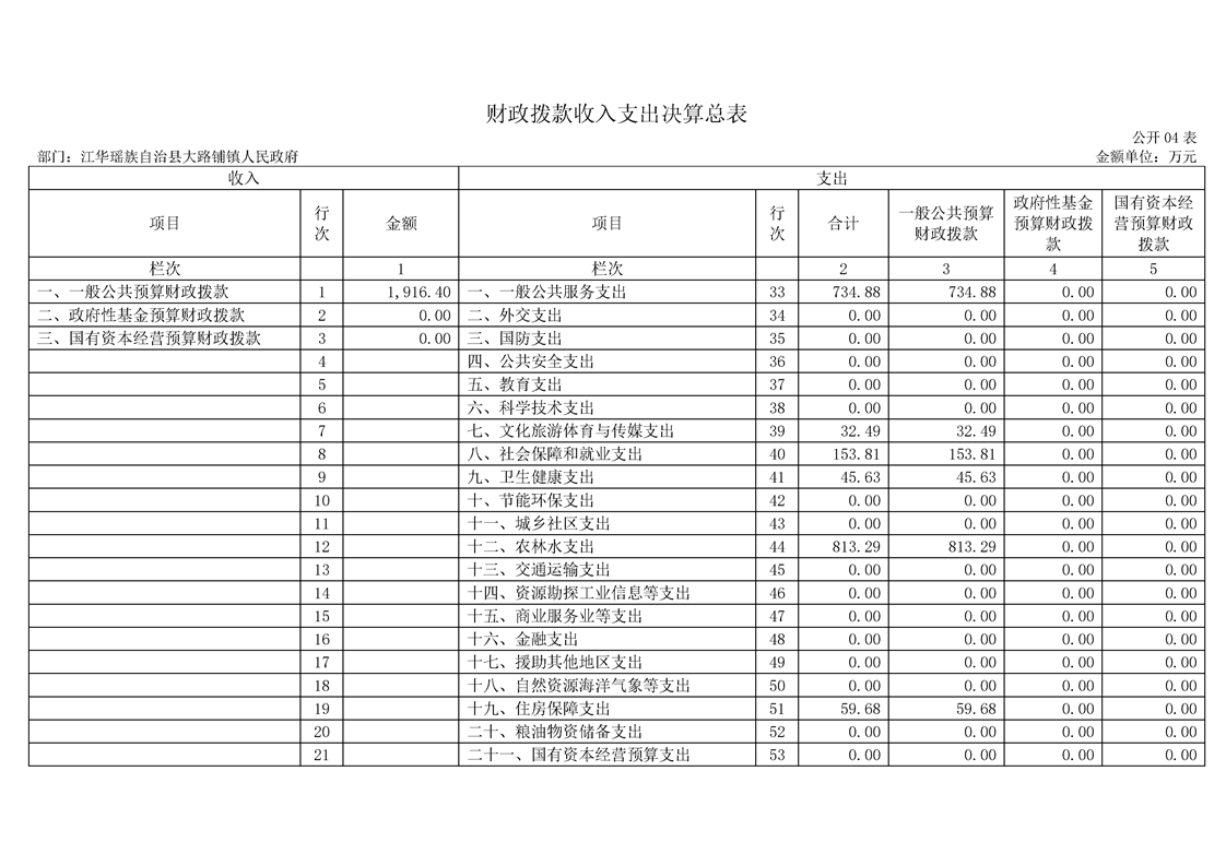 江华瑶族自治县大路铺镇人民政府2022年度部门决算