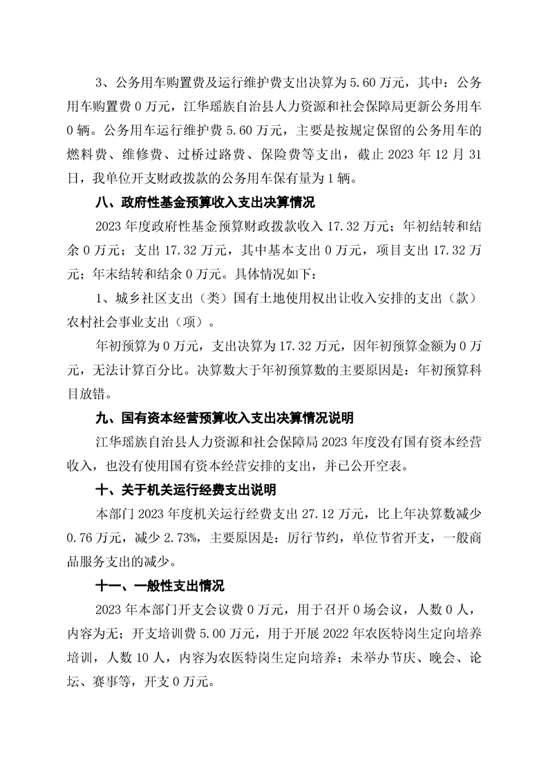 2023年度江华瑶族自治县人力资源和社会保障局部门决算