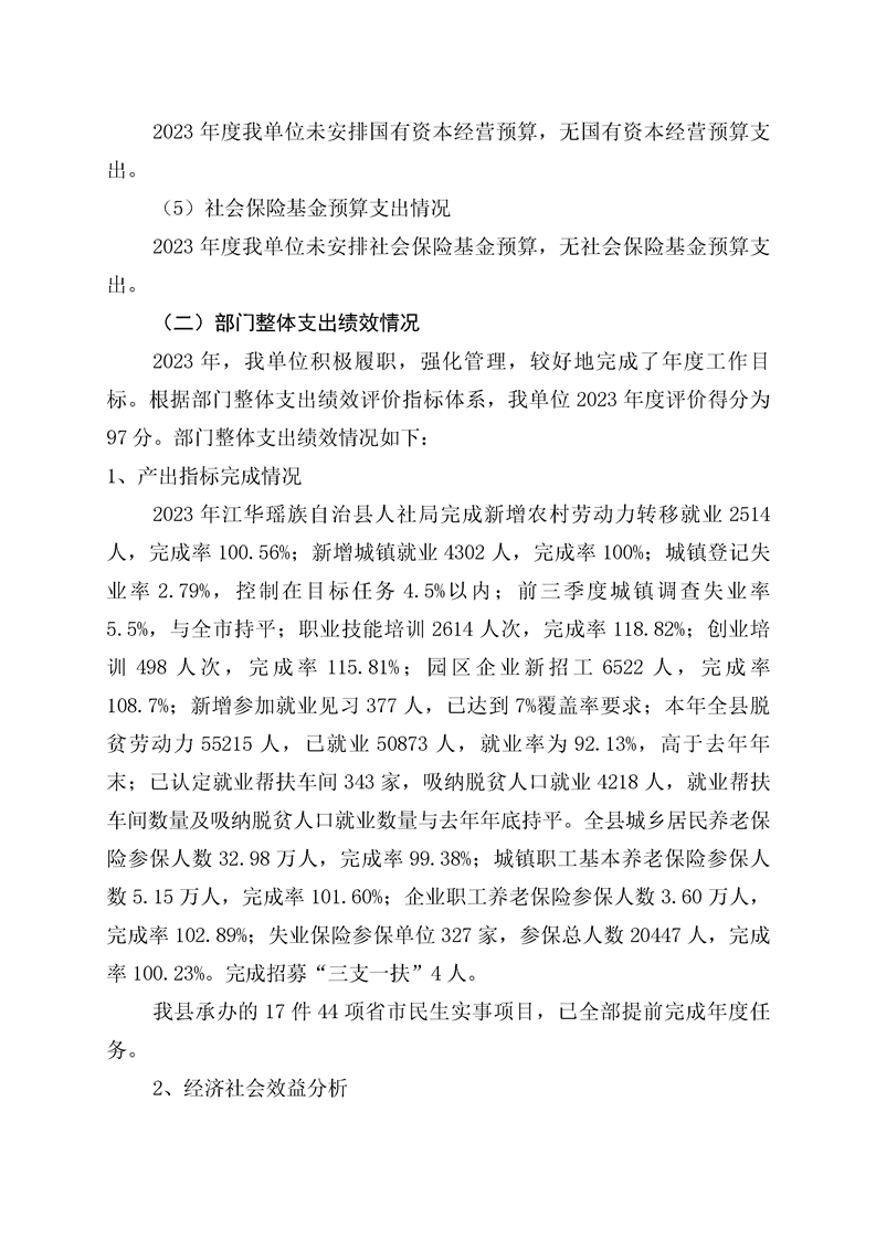 2023年度江华瑶族自治县人力资源和社会保障局部门整体支出绩效评价报告