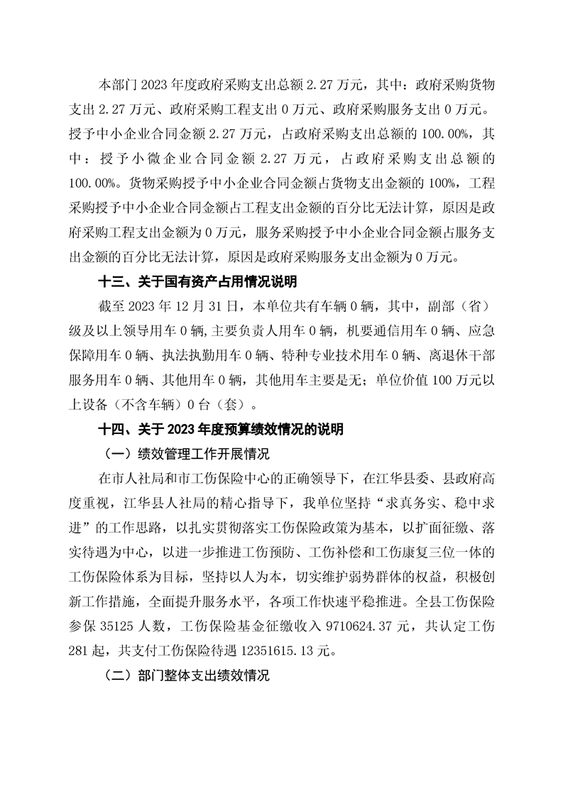2023年度江华瑶族自治县工伤保险服务中心部门整体支出绩效评价报告