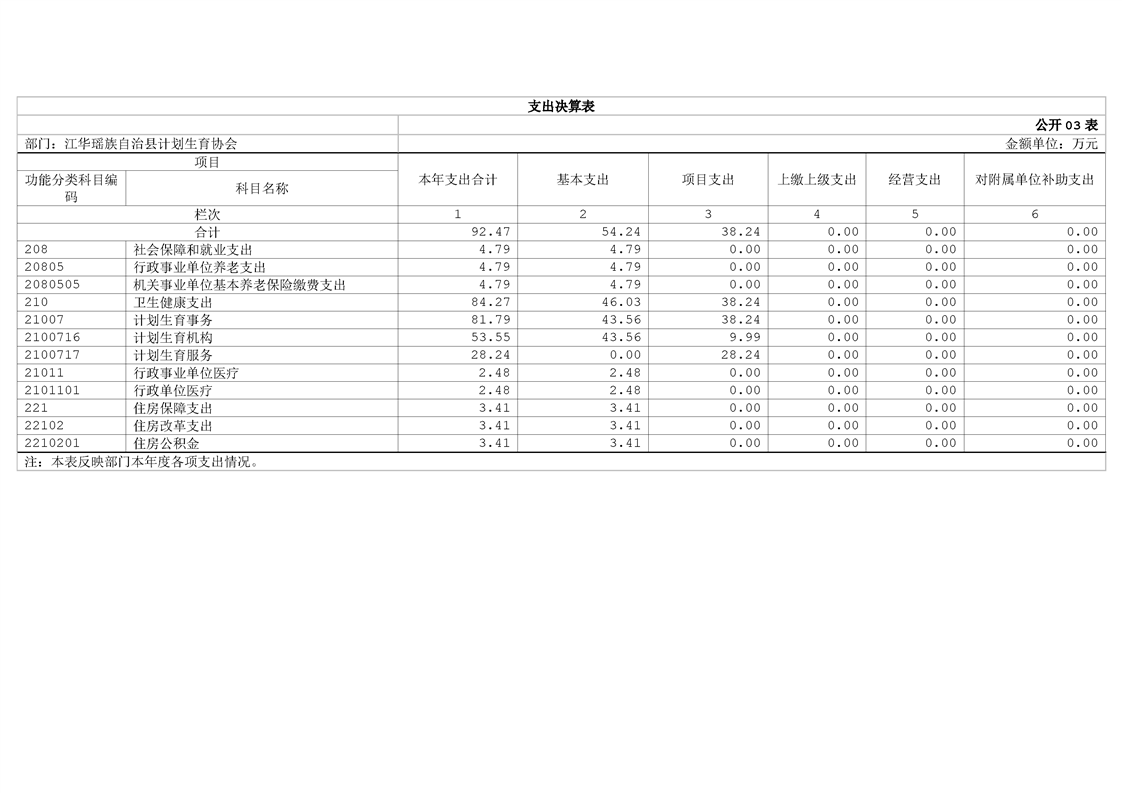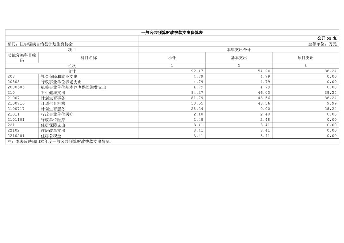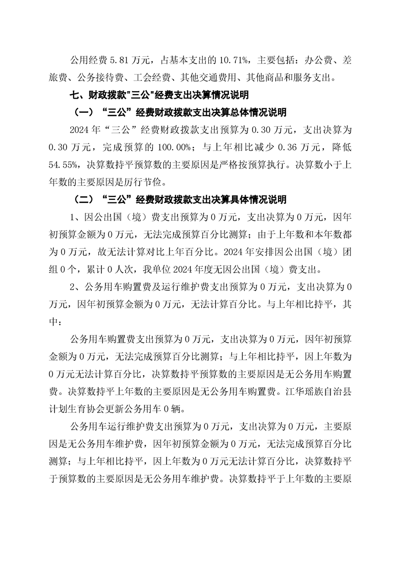 江华瑶族自治县计划生育协会2024年度部门整体支出绩效自评报告