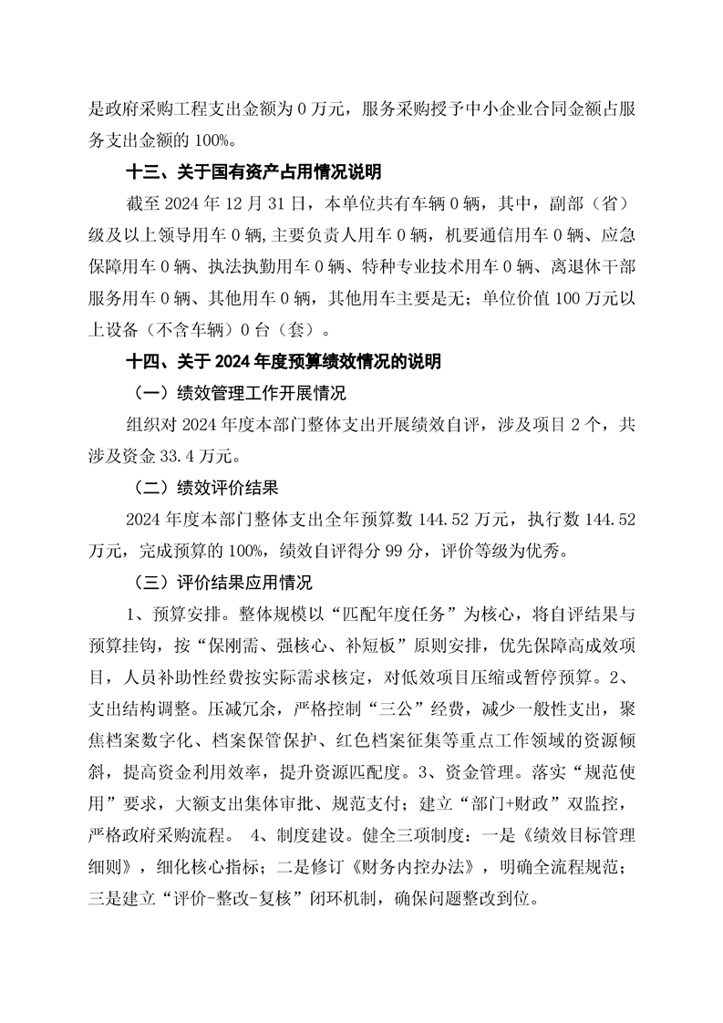 江华瑶族自治县档案馆2024年度部门整体支出绩效自评报告