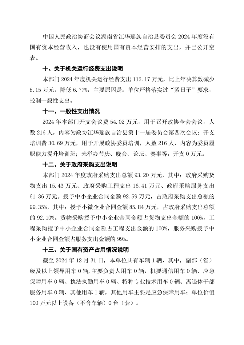 2024年度中国人民政治协商会议湖南省江华瑶族自治县委员会部门决算