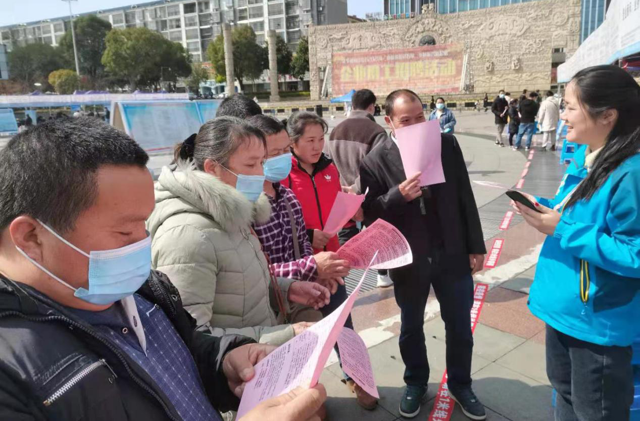为扎实做好就业民生工作,促进外出务工人员返乡就地、就近就业,水口镇党委政府借助返乡人员回家过年的契机,加大输送“镇+县”劳动力前往就业。一是加大对家门口就业的宣传,组织村干部积极宣传2021年江华县春风行动企业用工招聘信息,并在“走进水口”官方微信公众号推送“就业何必去远方,家乡就是好地方--致水口返乡人员的一封信”,为求职者提供最新的就业岗位信息,营造家门口就业的良好氛围。二是组织各驻村领导与村支“两委”成员一同对全镇务工人员就业意愿进行排查摸底,根据就业意愿精准的提供就业服务。为了鼓励群众尽快返岗复工,找到合适的工作,水口镇采取政府包专车输送的方式,开展点对点求职输送专项服务。