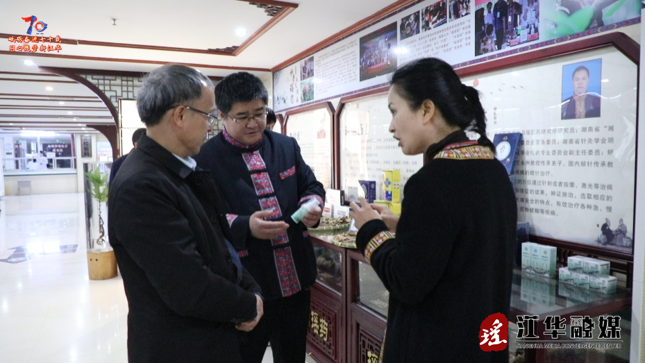 在江华民族中医院,祝贺团首先观看了瑶医药文化介绍短片,随后在讲解中了解到多种特色瑶药材、特色诊疗项目以及与瑶医药相关的非遗。祝贺团对江华深入挖掘民族医药宝库、满足群众健康需求的实践表示赞赏,并指出,瑶医药是民族地区的宝贵资源,要持续做好传承创新,让传统医药惠及各族群众。