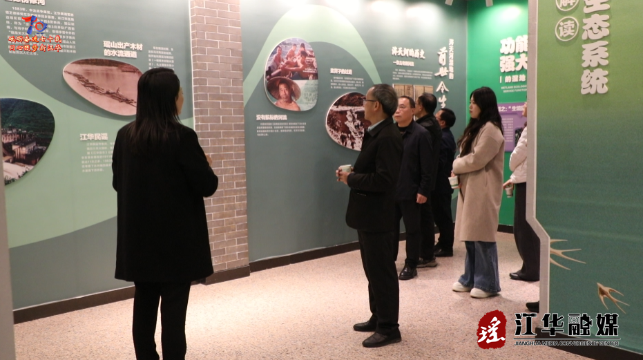 在涔天河国家湿地公园科普宣教中心,祝贺团通过观看生动形象的科普视频,详细了解了江华水域生态环境和生物多样性保护成果,包括中华秋沙鸭等国家一级保护动物的栖息状况,直观对比了水域整改前后的风貌变化,并通过镜头欣赏了湿地公园捕捉到的珍稀鸟类的活动画面,对江华践行生态文明理念、守护绿水青山的成效表示认可。