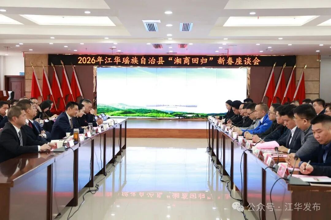 畅叙赤子爱乡之情,共商家乡发展大计。2月12日下午,我县召开2026年“湘商回归”新春座谈会,邀请江华籍乡贤代表、广东省湖南江华商会代表、校友代表齐聚一堂,共叙乡情、共话发展。县委书记袁章中出席会议并讲话,县委副书记、县委统战部部长、江华高新区党工委第一书记冯志多主持会议。