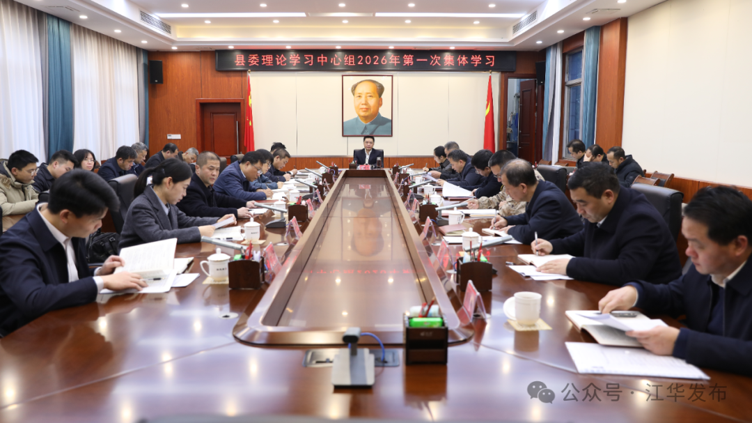 1月30日上午,县委理论学习中心组2026年第1次集体学习暨县委常委班子2025年度民主生活会会前专题学习举行。县委书记袁章中主持学习并作总结讲话。