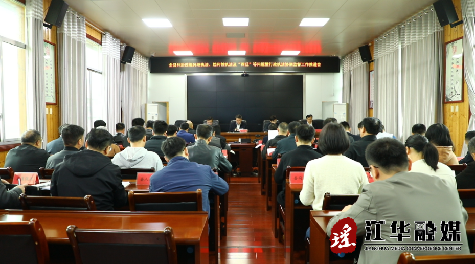 4月2日,江华召开纠治违规异地执法、趋利性执法及“四乱”问题暨行政执法协调监督工作推进会。江华副县长提名人选、县公安局局长蒋剑彬出席。