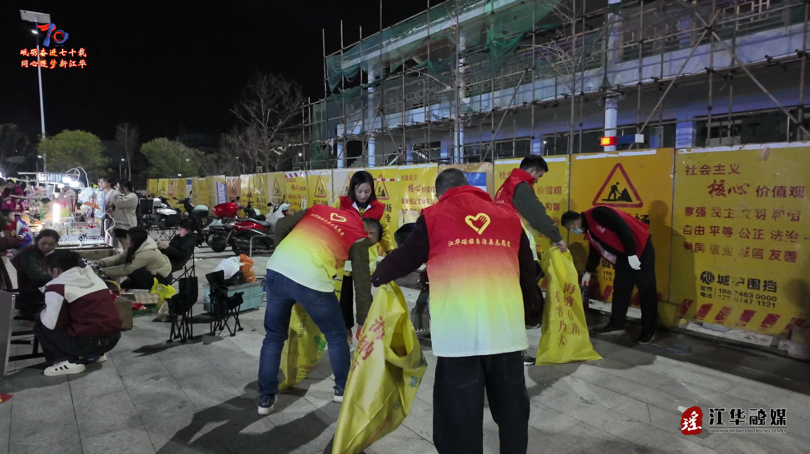 活动中,志愿者们分工协作、高效行动,全力完成现场保洁与设施整理工作。他们手持清洁工具,对广场内外的生活垃圾进行全面清扫,细致清理卫生死角,同时有序整理活动现场的凳子,确保环境整洁、设施归位。志愿者们还现场号召广大群众主动参与志愿服务,从自身做起践行环保理念,争做有素质的江华人,以实际行动传递文明力量,助力文明江华建设。