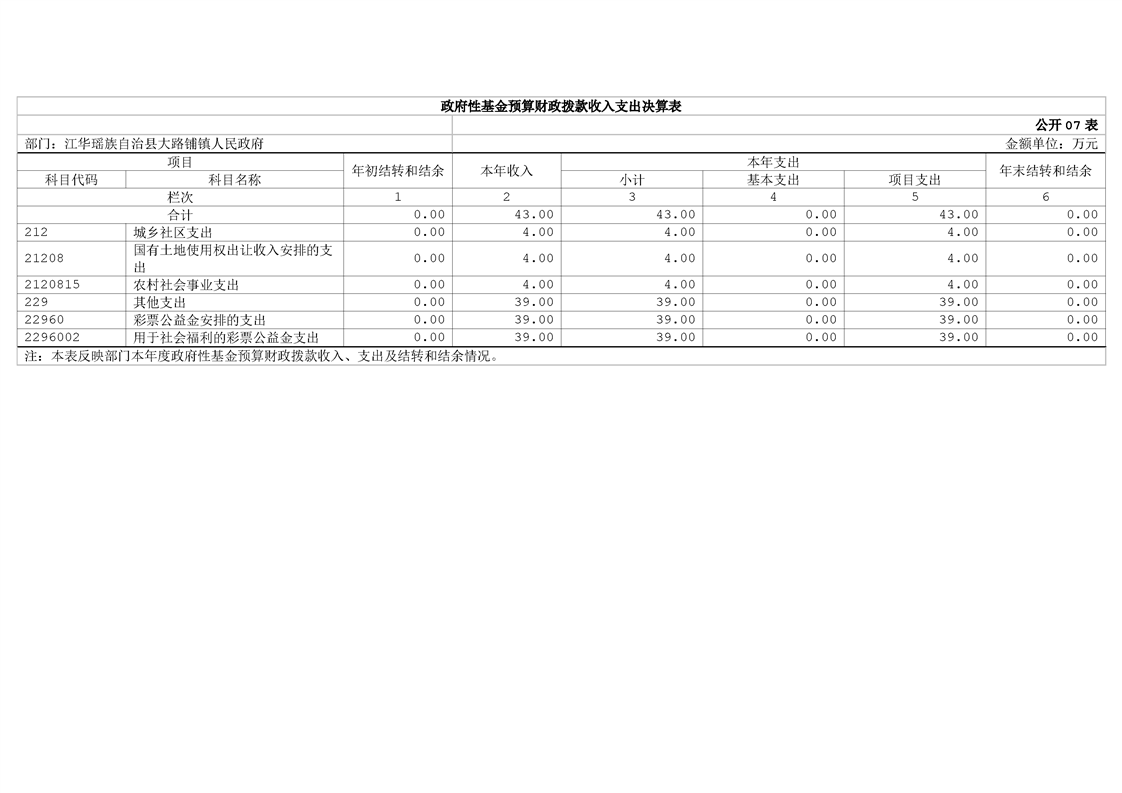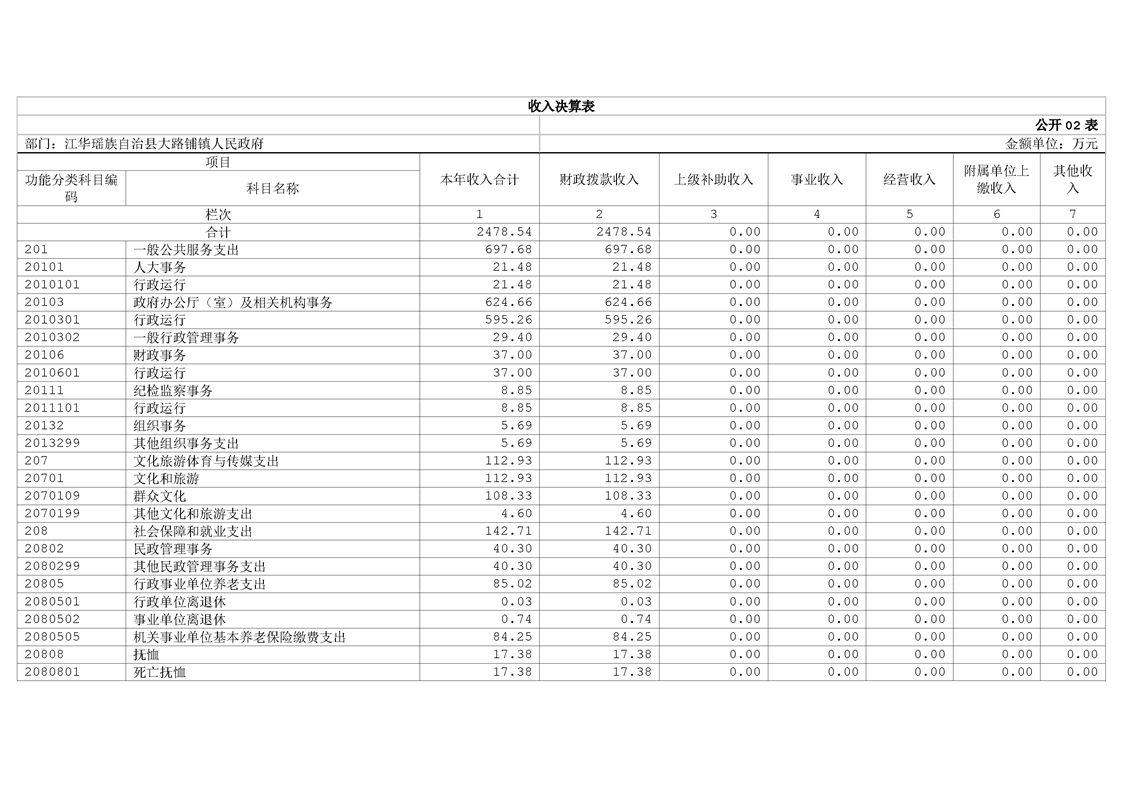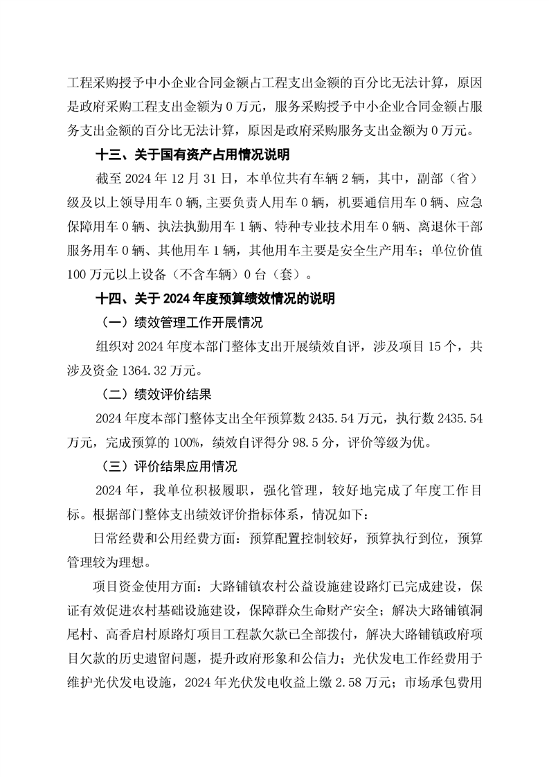 2024年度江华瑶族自治县大路铺镇人民政府部门决算