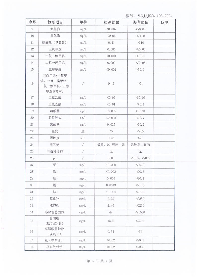 江华瑶族自治县自来水公司2024年11月份水质检测报告(43项)