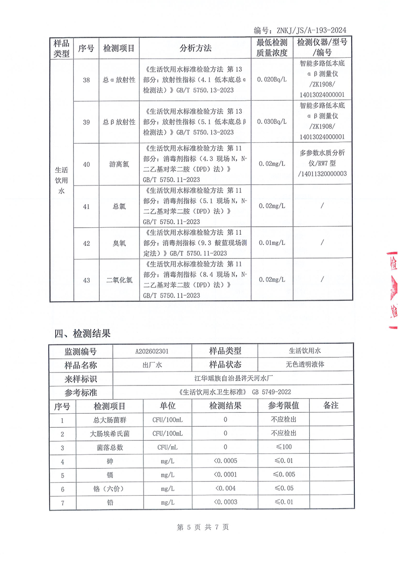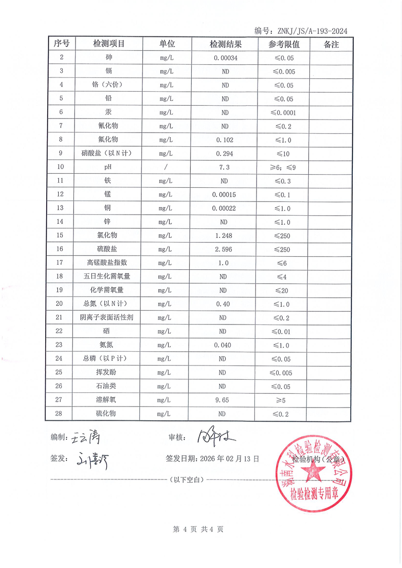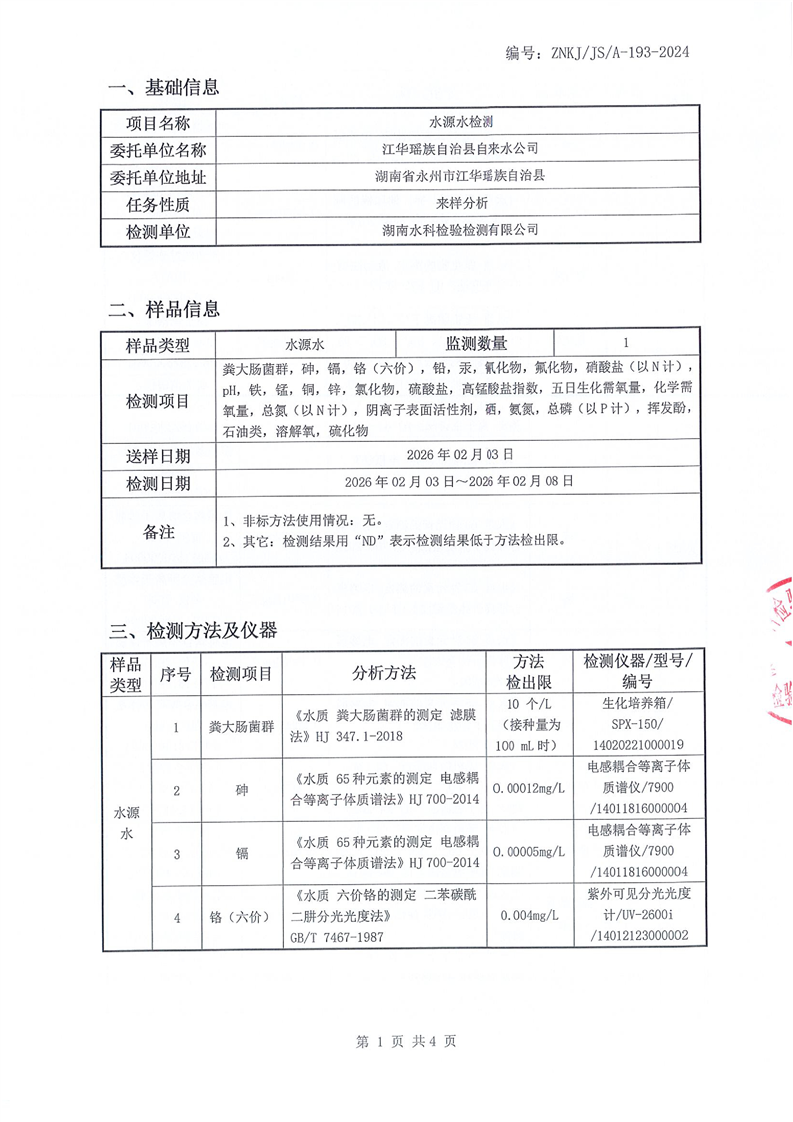 江华瑶族自治县自来水公司2026年2月份水质检测报告(43项)