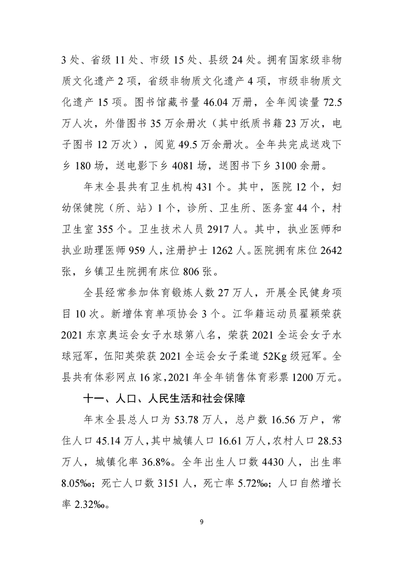 江华瑶族自治县2021年国民经济和社会发展统计公报