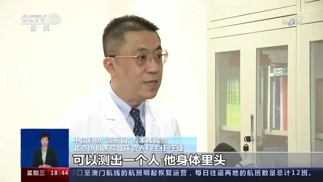 中国科协“源新闻”专家库成员 北京协和医院临床营养科主任 于康:所以我们要在体重的基础之上,引入人体成分的概念。用一种现在的手段,比如说生物电阻抗,可以测出一个人,他身体里头水分多少,脂肪比例多少,肌肉组织量多少。然后我们要看脂肪的比例,体脂率。体脂率就是身体总脂肪量跟体重之间的比例。年轻男士不要超过20%,女士不要超过30%。如果超过这个值,您即使体重标准,也是体脂超标。