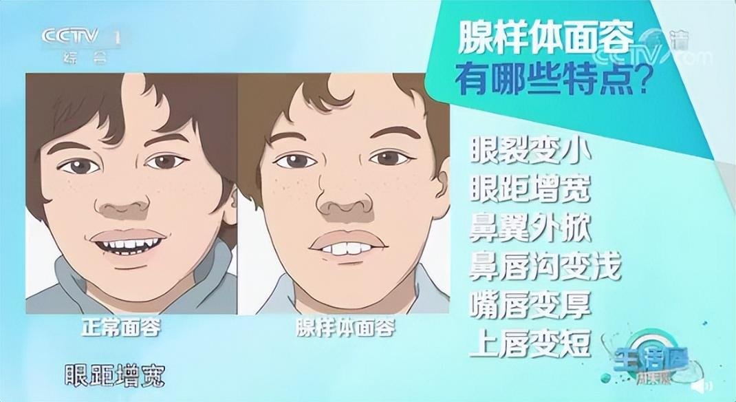 腺样体面容多半是因为腺样体肥大引起的,因睡眠呼吸障碍,导致长期张口呼吸从而引起面部发育的障碍。
