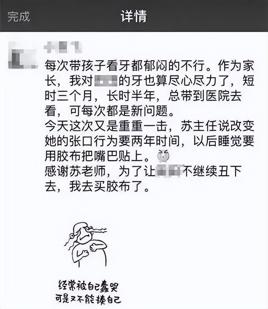 晚上睡觉时,可以学学下面这位妈妈的做法——用胶带把嘴巴贴上。