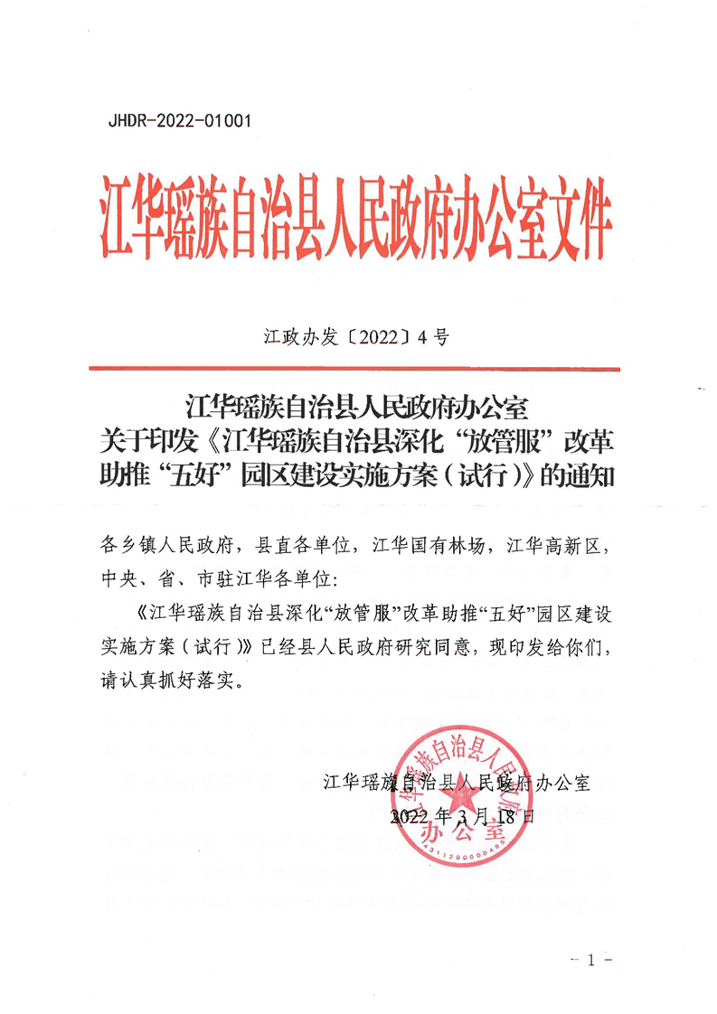 关于印发《江华瑶族自治县深化“放管服”改革助推“五好”园区建设实施方案(试行)》的通知