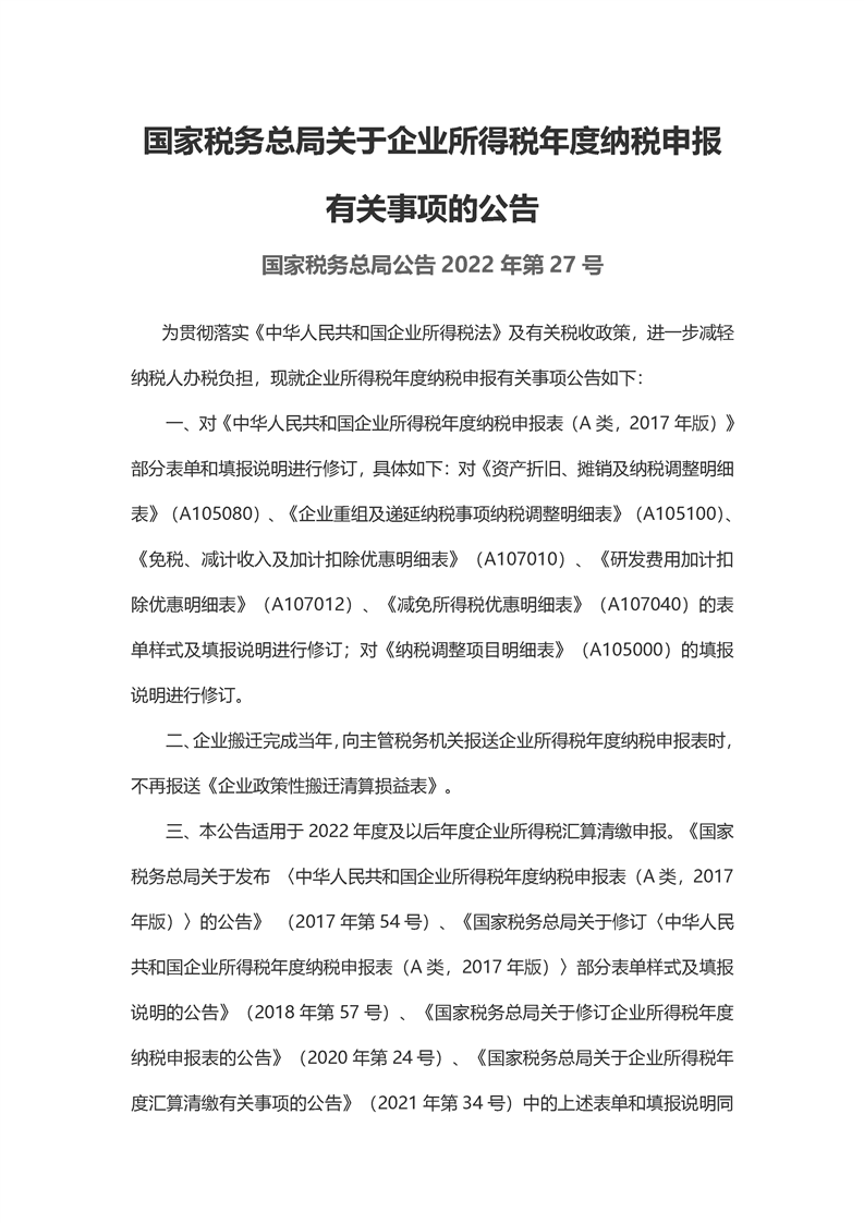国家税务总局关于企业所得税年度纳税申报有关事项的公告