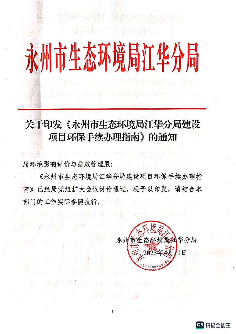 关于印发《永州市生态环境局江华分局建设项目环保手续办理指南》的通知