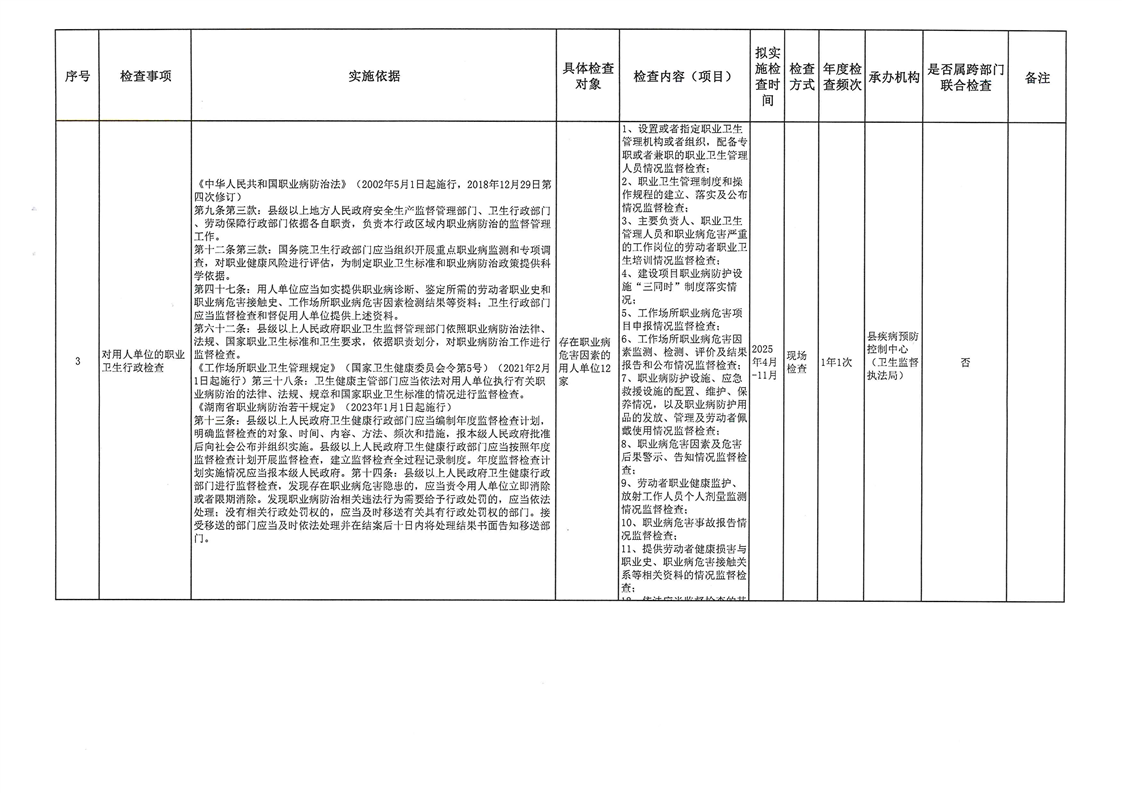 江华瑶族自治县卫生健康局涉企行政检查计划