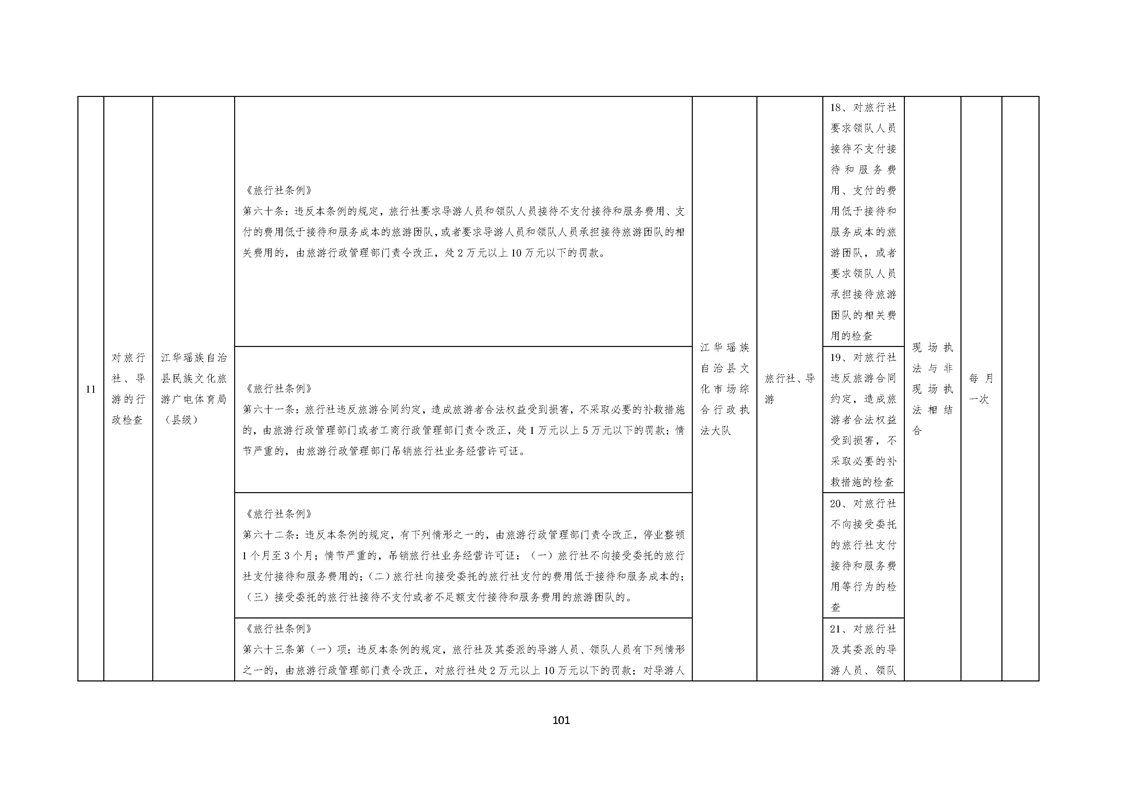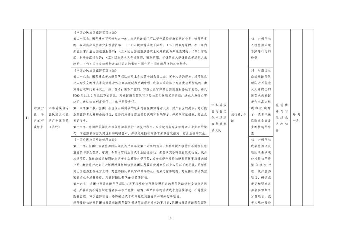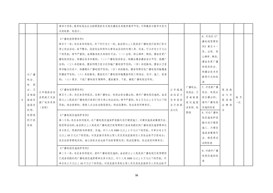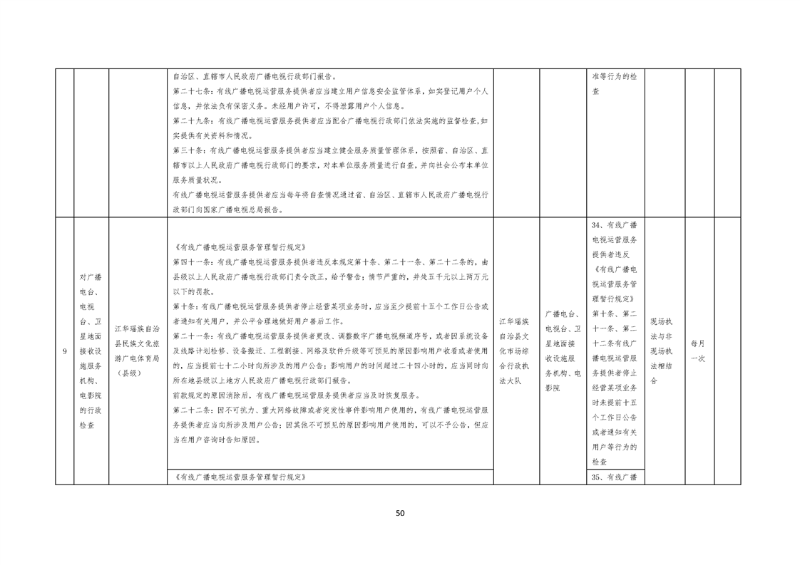 江华瑶族自治县民族文化旅游广电体育局涉企行政检查事项清单